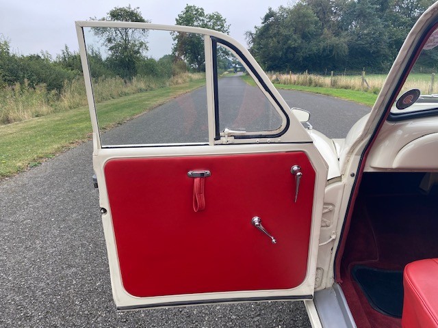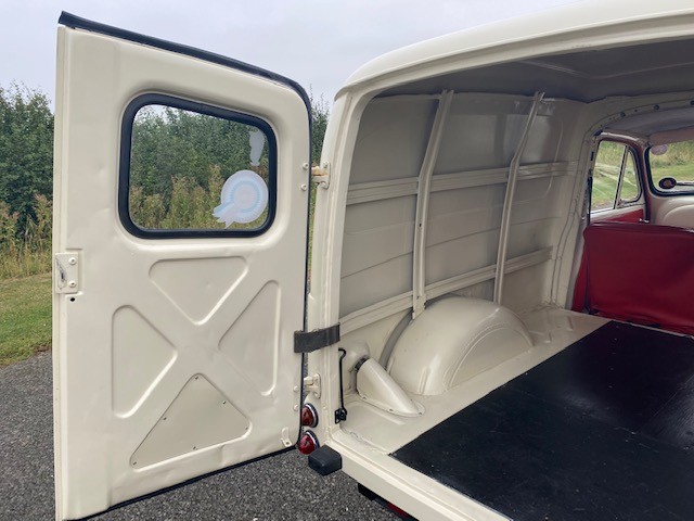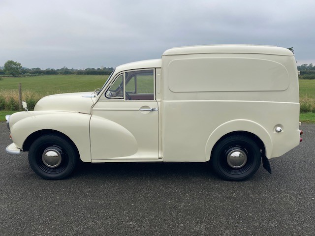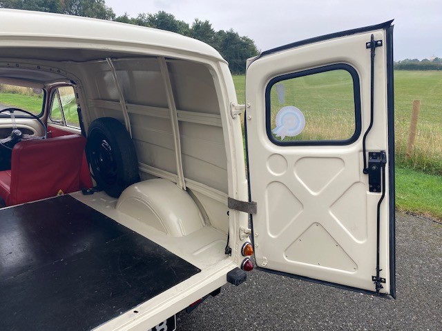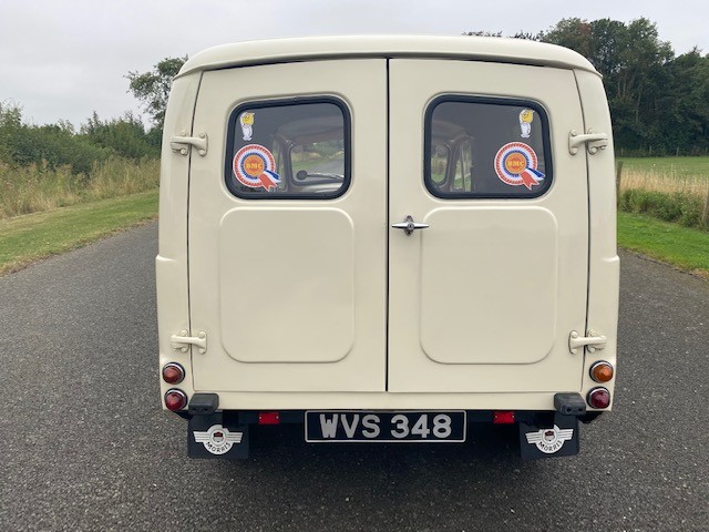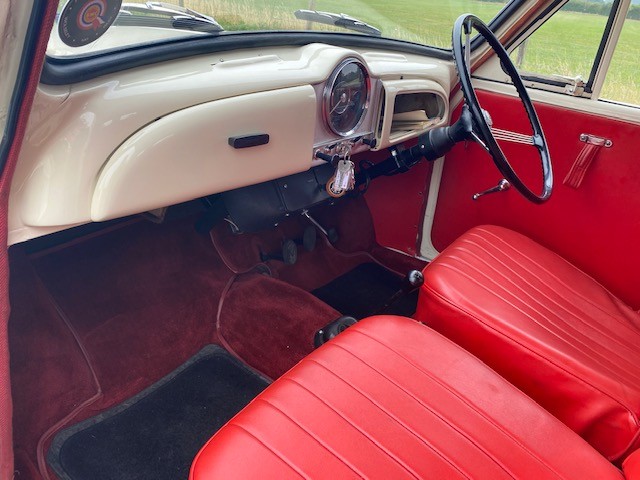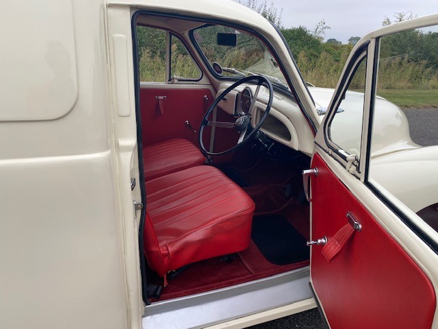 1959 Austin 1000 6CWT Van in cream with red interior. With Austin and Morris both being part of BMC, the Minor-based Morris commercials were also marketed as the Austin 6cwt and Austin 8cwt, with a closed van and open pick-up version of the Minor being built from 1953 until the end of production in 1973. They were designed for commercial use with small businesses in mind, although many made their way to larger corporations.