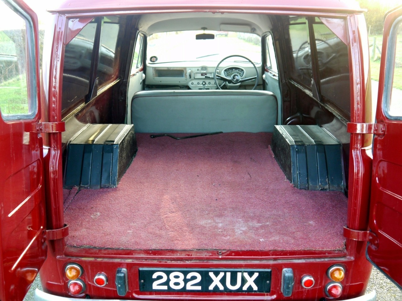 1961 Austin A55 Half-Ton Van. Burgundy Red with Grey bench seat. Half-ton commercial