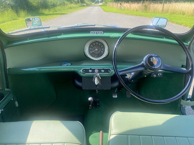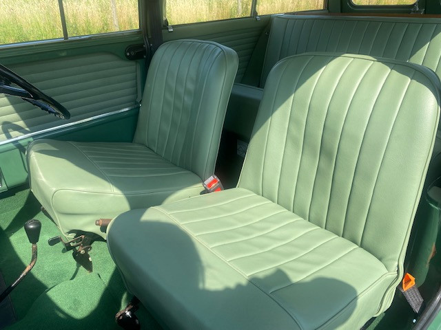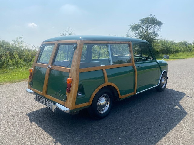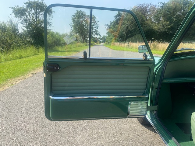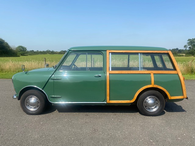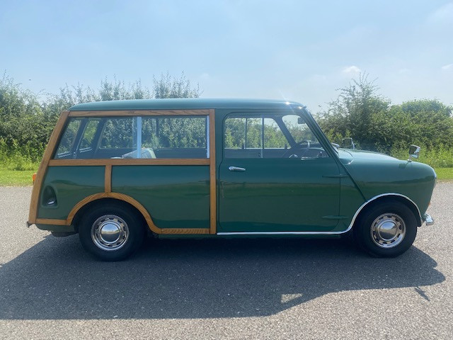 1965 Austin Mini Countryman. Almond Green with green leather upholstery. First registered on the 15th February 1965, this lovely Mini had a comprehensive restoration carried out between 2007- 2010 by Minor Miracles Car Restorations, Devon at a cost of £19,524. This restoration is 11 years old but looks like it was completed yesterday as the car is absolutely stunning, having only covered 3700 miles since and has been dry stored in this time. The panel fit and shut lines are very good and the wood fame is in excellent condition. As you can see in the photos the interior is just as good as the exterior and still looks like new and the engine bay is immaculate. This Austin Mini Countryman drove fantastically well when out on test drive firing up straight away and was great fun. This Austin Mini would be a great addition to any collection, would look fantastic at a car show and is ready to be used and loved by a new owner. Absolutely any inspection is welcome. Viewing is highly recommended as we know you won't be disappointed. UK mainland delivery included. Follow us on Facebook and Instagram @morseclassics