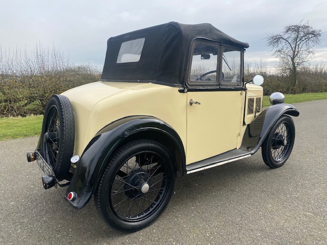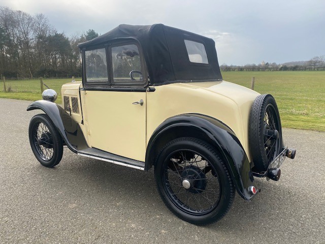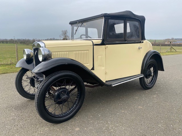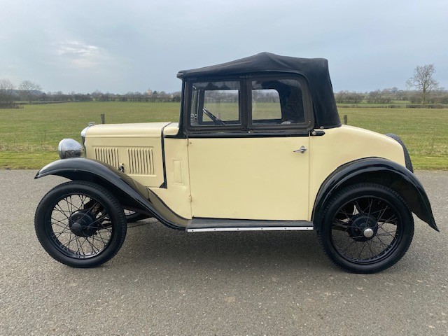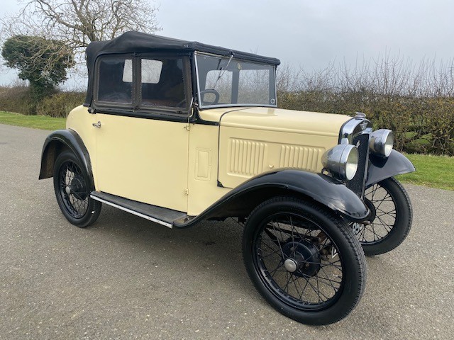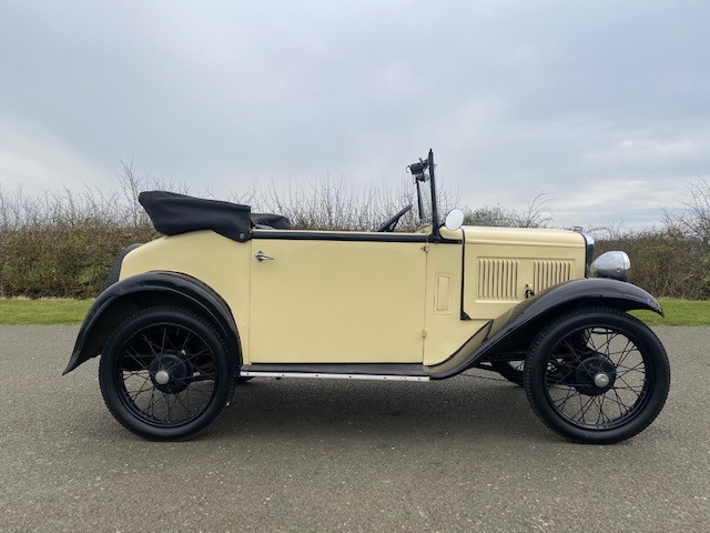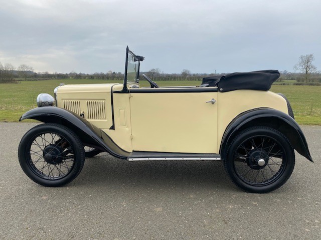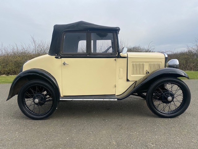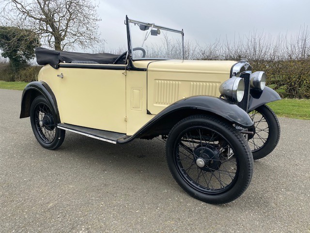The previous owner had this Tourer for forty-two years, over that time he has acquired other Austins and this car has seen very little use in the last two to three years. During the 1980's the car was completely restored when its colour was changed from green and black to its current scheme of cream and black. It has been subject to some works in recent years including new valves, guides, springs, a new clutch, re-conditioned dynamo and distributor. The gearbox has been rebuilt and the car has covered around 50 miles since. The hood and side screens are all in good condition for driving in inclement weather although to best enjoy this car it best suits sunny days with the roof down. It comes complete with current V5, all MOTs dating from 1985 to the 2013, buff and green logbooks dating back to 1950, gearbox receipt dated 2016 and spare keys. Upon test drive this charming Austin drove just as she should with waves from people out on their daily walks and one person pulling up at the traffic lights to admire her. Her engine is spritely with a smooth gearbox she brakes and handles well especially as she’s nearly 90 years old, great fun for the coming summer months with hopefully some car shows to visit. Absolutely any inspection is welcome. Viewing is highly recommended, and we know you won't be disappointed. All major debit cards accepted. Please contact us for any further information.UK mainland delivery included. Follow us on Facebook and Instagram @morseclassics
