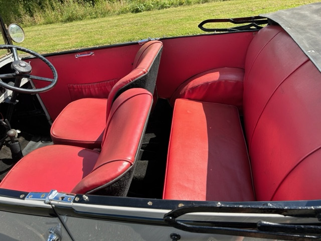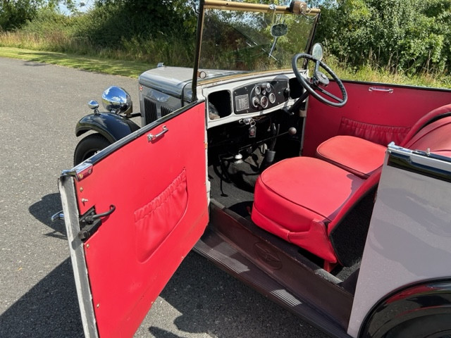 1933 Austin Chummy in Grey with red interior and black side screens and roof.