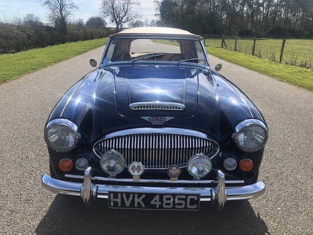 1965 Austin Healey 3000 Mk. III BJ8 LHD. Manufactured at Abingdon works between the 2nd and 5th July 1965 that was then despatched to Charlestown, South Carolina on the 19th July 1965. It is a Phase II car, meaning; it had improved ground clearance at the rear and anti-roll bars. The original optional extras included a laminated windscreen heater, wire wheels, overdrive gearbox, adjustable steering column and, unusually for the American market, amber indicators, whilst its original colour was Healey Blue. Little is known of the first owner of the vehicle but a key member of the Austin Healey Club of America, a Mr Joseph Pepe of Pennsylvania, owned the car for many years before being sold as a project to Bob Yule, a well known owner of Healey Specialist restorers Autofarm, Ontario Canada. Bob in his words, “sat on the car” for a few years before completing the restoration around 10 years ago. It had two owners in Canada who used the car sparingly before being repatriated to the UK in 2017 where it was exhibited at the NEC Classic Car Show in Birmingham.