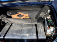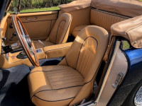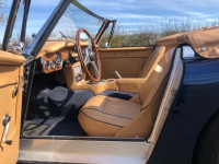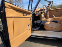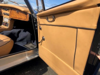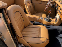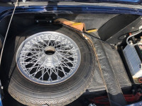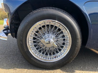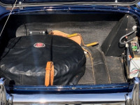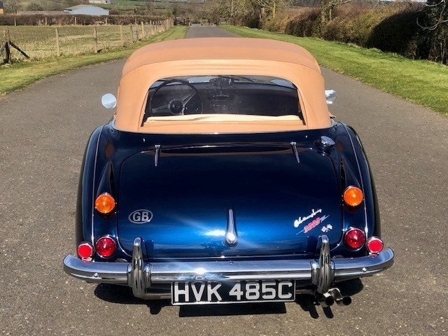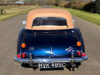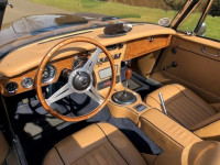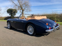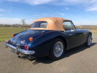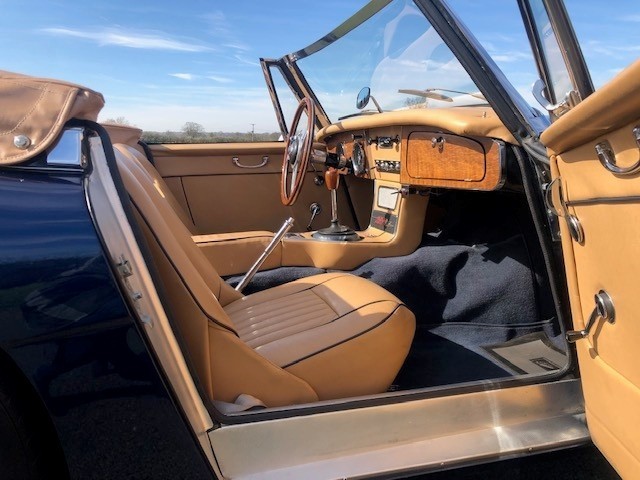 The extensive restoration is evident upon inspection of this example. The coachwork is excellent presenting in metallic dark blue and complemented by the chrome wire wheels and contrasting tan interior. Period fog/driving lights are fitted to the front as well as a badge bar. The gearbox and overdrive (on 3rd and 4th) were refurbished at Healey Specialist Hardy Engineering in December 2017 and January 2018. The engine bay is almost as original, it has the Healey polished cover rather than original painted and modern horns that are more efficient; the originals are included. The interior is as good as the rest of this Austin Healey and fitted with period lap belts and a Mota-Lita wood-rimmed steering wheel. The glass is all original as is the hood frame but the hood, as you would expect, was replaced when the car was restored and comes with a matching hood cover and tonneau; the quality of which is very good with no rips or tears.
