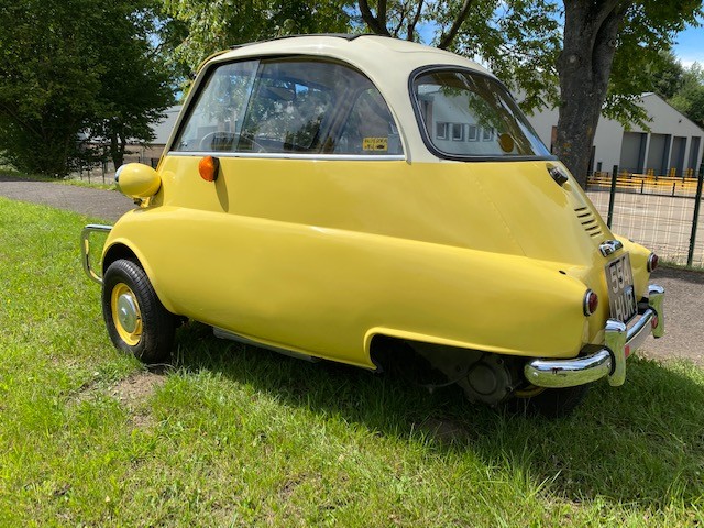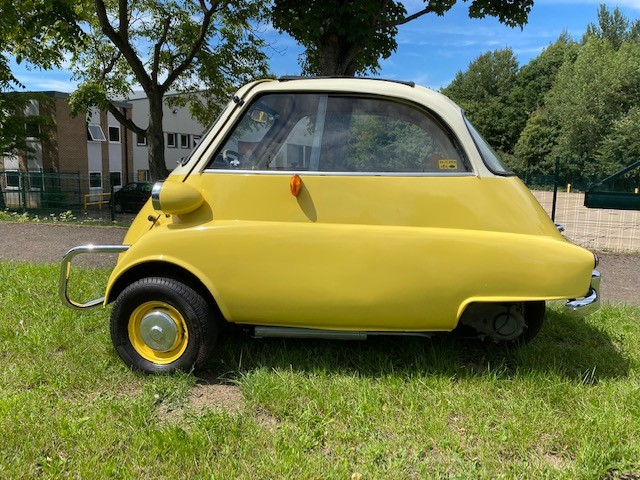 1959 BMW Isetta 300 in yellow and white. Built by the Italian firm of Iso, the Isetta