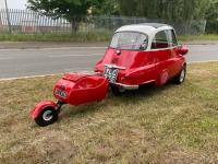 Dating from 1960, this Isetta 300 is one of those Brighton-built cars The previous owner was a collector and has a fantastic selection of cars but as he wants to keep buying some of his collection are being moved on to new homes. This BMW Isetta also comes with it's own trailer to hitch onto the back colour coded in red to match the Isetta, this enables you to go away for a weekend with some extra luggage spacel! Now MOT and TAX exempt she is running and driving just as she should. On test drive she performed well through all of the gears and made a lot of heads turn to admire her quirkiness.