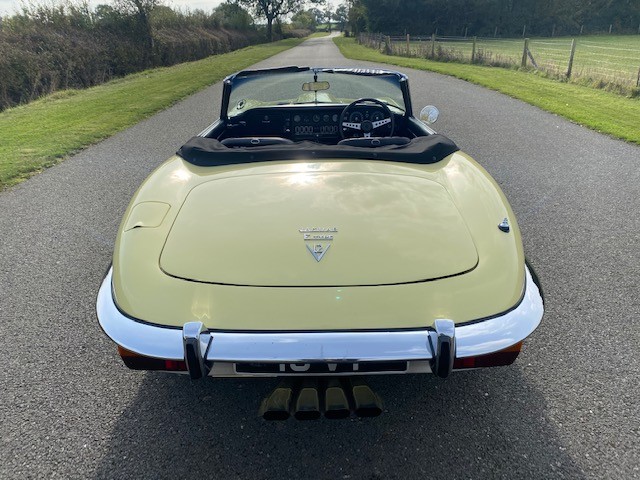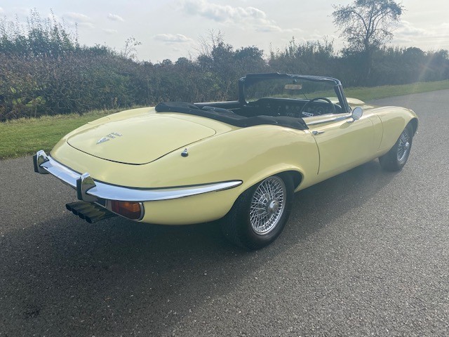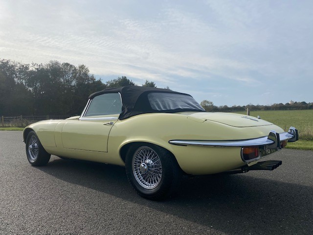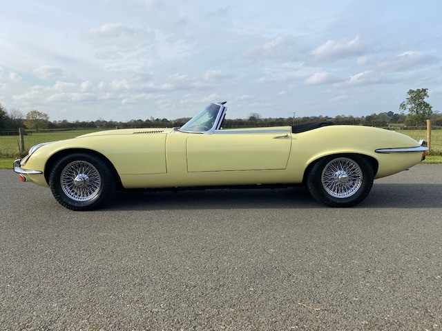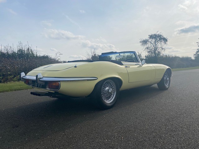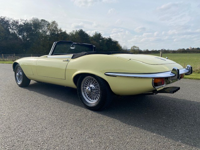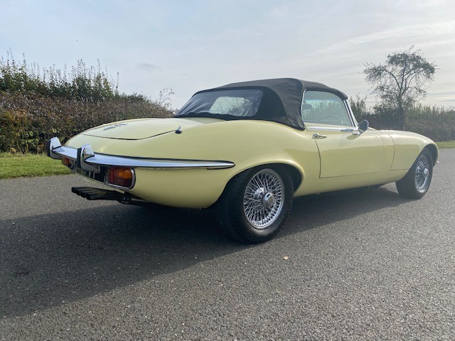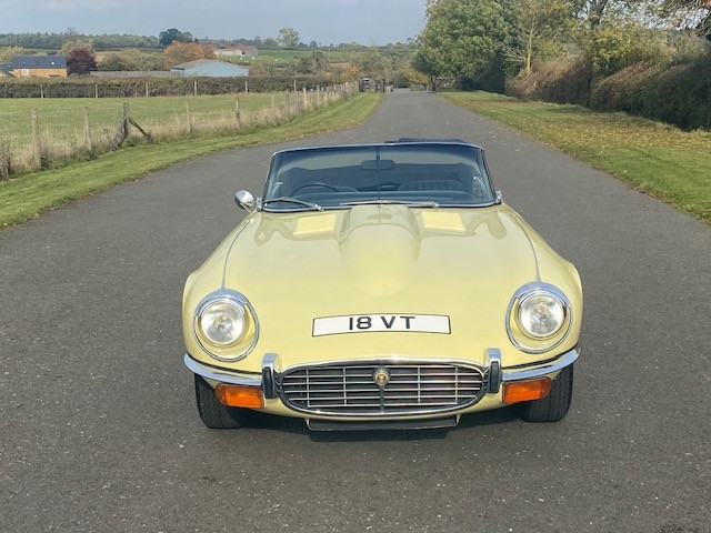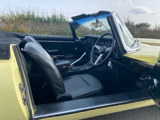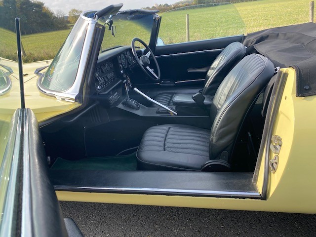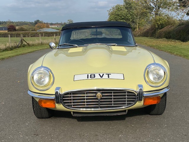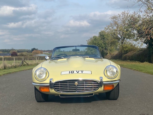 1973 Jaguar E-type V12 Roadster in Primrose Yellow Automatic. Registration No: 18VT which is included in the sale and has been on the car since 1976.