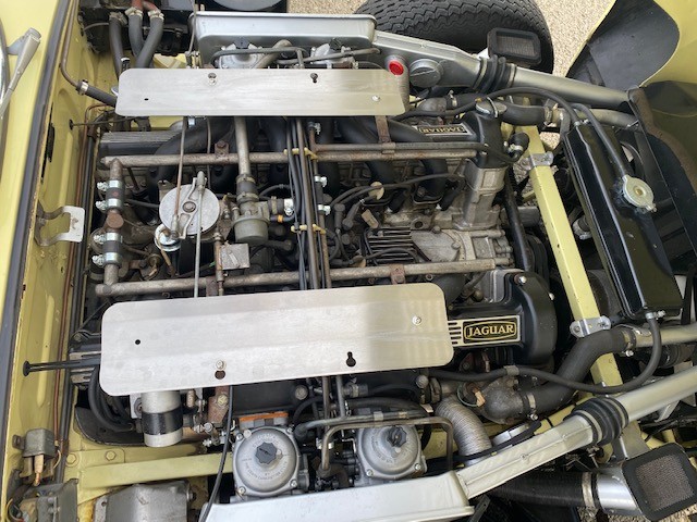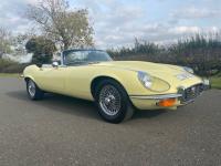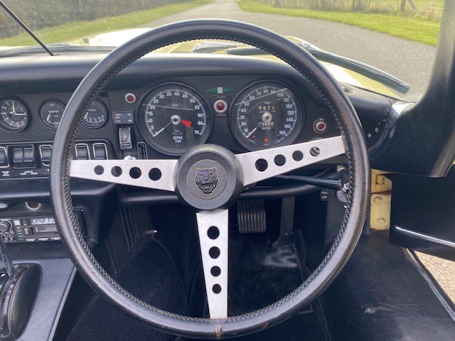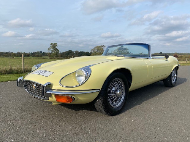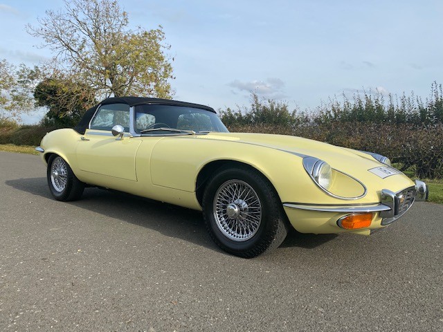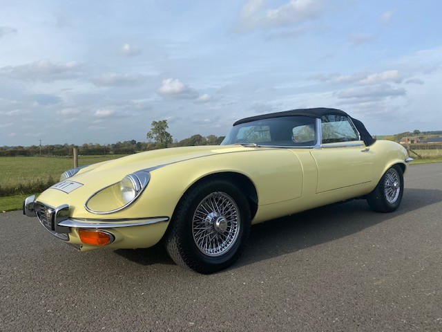 This Jaguar E type V12 is an original UK right hand drive matching numbers car with a Heritage Certificate, original book pack and weather equipment. Automatic with only 4 total keepers and warranted 49,900 miles. Finished in the original strident combination of Primrose Yellow bodywork and Black leather upholstery. Manufactured in 1973 it was first supplied to Lathams of Loughborough for use as a demonstrator car and was first registered 3rd May 1974. Since then it has had just four keepers to date; the second one of whom, a Group Captain, retained the car from 1976 to 2010. Offered with a large collection of MOTs which endorse the low mileage of 49,900.  The car comes with a pair of keys; wheel tools and tool roll and full weather kit. The car was serviced in 2019 including engine fettling costing c.£5,000 with this invioce on file. The car also has an MOT till June 2021 with no advisories. Upon test drive this E type drove fantastically with a very smooth automatic gearbox mated to the V12 engine she pulled with a very strong engine and was a real pleasure to drive.  This Jaguar is just waiting to be enjoyed in new hands. Absolutely any inspection is welcome. All major debit and credit cards accepted. Please contact us for any further information. UK mainland delivery included.