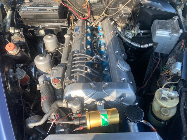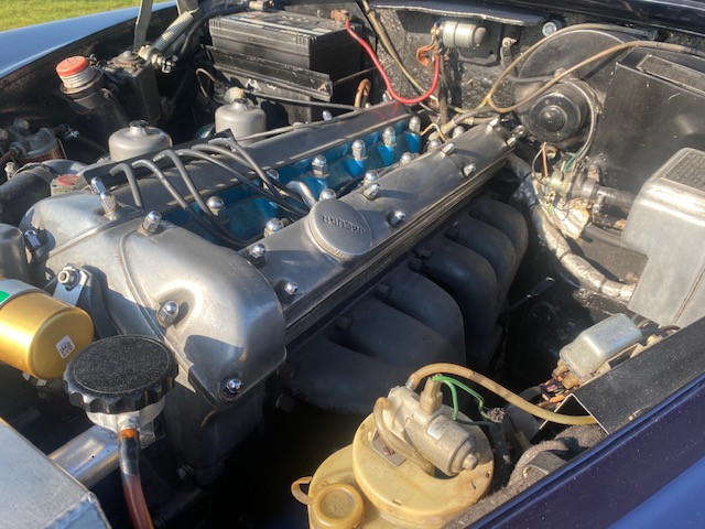 This matching-numbers example is fitted with four-pot front brake calipers, recently replaced rear brakes and Koni Classic shock absorbers. Benefitting from restoration work in 2020-2021 by Cricklewood-based Lewmark Auto Company which included a respray, interior refresh, carburettor overhaul with new jets and needles, a new aluminium radiator with Kenlowe fan, renewed heater matrix and further works and services which can all be seen in the included receipt from Lewmark Autos for over £5,000. Replacement triple-plated front and rear bumpers have also been added.