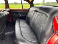 1968 Jaguar 340 Automatic with Power Steering in Jaguar Phoenix Red with black upholstery and wire wheels. Upgraded with MK2 'big bumpers' and front fog lights this Jaguar also benefits from power steering. From September 1967, the Jaguar MkII range was replaced by the 240 and 340 models with slimmer bumpers, chrome grilles in place of the front fog lights and Ambla, rather than leather interiors. Introduced to keep the range attractively priced until the launch of the new XJ6 in September 1968, some 2,788 340s were made during the period - the 240 carrying on as a budget model for some time to come. The good news was, that thanks to a new straight port cylinder head and twin SU carbs, a 240 was noticeably quicker than a 2.4 and a 340 had at least the performance of the old 3.8.