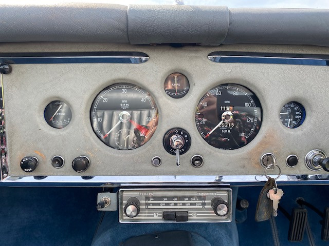 This lovely XK150 has had just three owners in its 64-year life (two since 1962) and remained the treasured possession of the previous keeper for 22 of them. This XK150 has evidently benefitted from a substantial degree of maintenance over its lifetime with written notebooks from 1962 detailing all maintenance. Over the last 18500 miles the car has benefited from painted wire wheels, Pirelli Cinturato tyres, hubs, wheel bearings, brake discs, master and wheel cylinders, upper wishbone bushes and wiring harness have all be renewed and the steering rack refurbished. Equal attention has been paid to the interior, which has seen the seats and original steering wheel refurbished and the carpets, door cards, hood and headlining replaced by Jaguar specialist coach-trimmers Suffolk & Turley. Invoices on file that no expense has been spared in bringing the car into its stunning current condition. The Jaguar has apparently amassed a total of 174,047 miles to date all documented in the written maintenance records, though a change of speedometer along the way means it only currently displays 25,036.