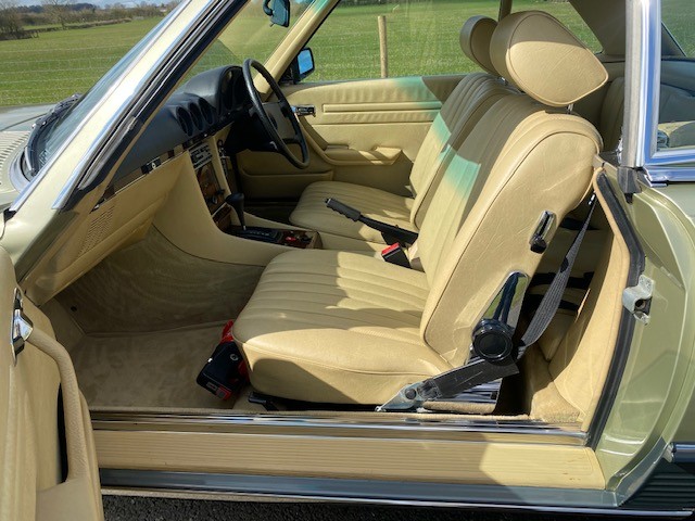 The engine bay has been sprayed with protective wax which has helped preserve various factory stickers on the 5 litre V8, while more Mercedes Benz stickers are visible on the exhaust silencer and one of the front brake callipers etc. A 'Regents Garage' sticker adorns the hardtops rear window and the unused spare wheel still wears its original Michelin XWX tyre. Obviously, much loved the 500 SLs appearance and condition belie it's forty years. It is amazing to think 2021 marks fifty years since the introduction of the R107 SL and there can be very few surviving UK supplied 500 SLs which are as original as NST369Y. This car comes with a V5, Mercedes Benz data card, history file and tool kit. The car is unmarked inside & out & is literally like it left the showroom. It is the best example we have ever seen. Turn the ignition key and the five litre V8 fires instantly and upon test drive the engine pulls through the rev range and acceleration is brisk with the four-speed automatic gearchange being effortlessly smooth. A real pleasure to drive. If the seventies styling ticks your box and you want a classic that combines a stylish driving experience with the ability to deliver you to your destination unflustered then this beautiful SL could well be for you. If the eighties styling ticks your box and you want a classic that combines a stylish driving experience with the ability to deliver you to your destination unflustered then this beautiful SL could well be for you. THE CAR COMES WITH AN MOT UNTIL 7TH FEBRUARY 2026 WITH NO ADVISORIES BUT UPON SALE THE CAR WILL BE REGISTERED AS HISTORIC IN THE NEW OWNERS NAME - NO TAX OR MOT REQUIRED AND ALSO WILL BE ULEZ EXEMPT! Absolutely any inspection is welcome. Viewing is highly recommended, and we know you will not be disappointed. All major debit cards accepted. Please contact us for any further information.UK mainland delivery included. Follow us on Facebook and Instagram @morseclassics