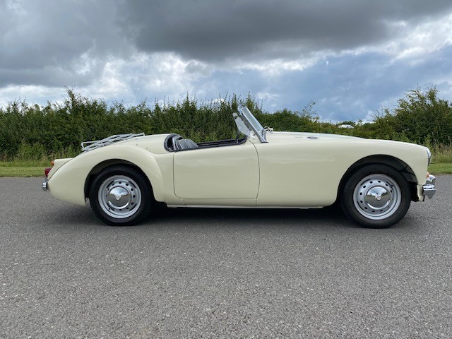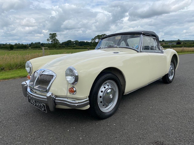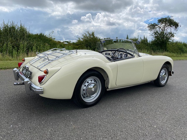1960 MGA MK I 1600 Roadster. Old English White with Black leather upholstery and a black hood. UK-supplied, right-hand drive, Mk1 Roadster (GHN) first registered on 27/06/1960