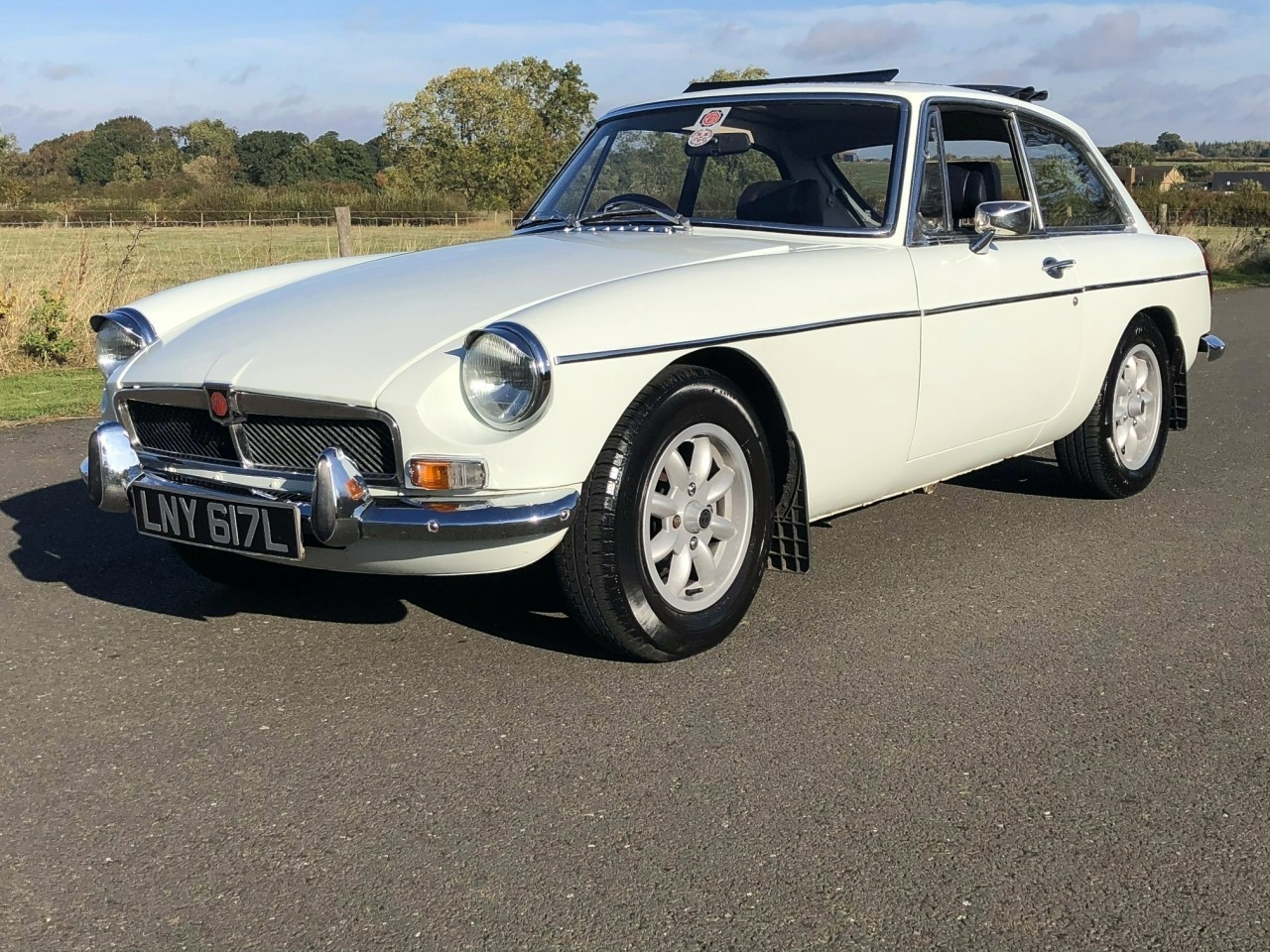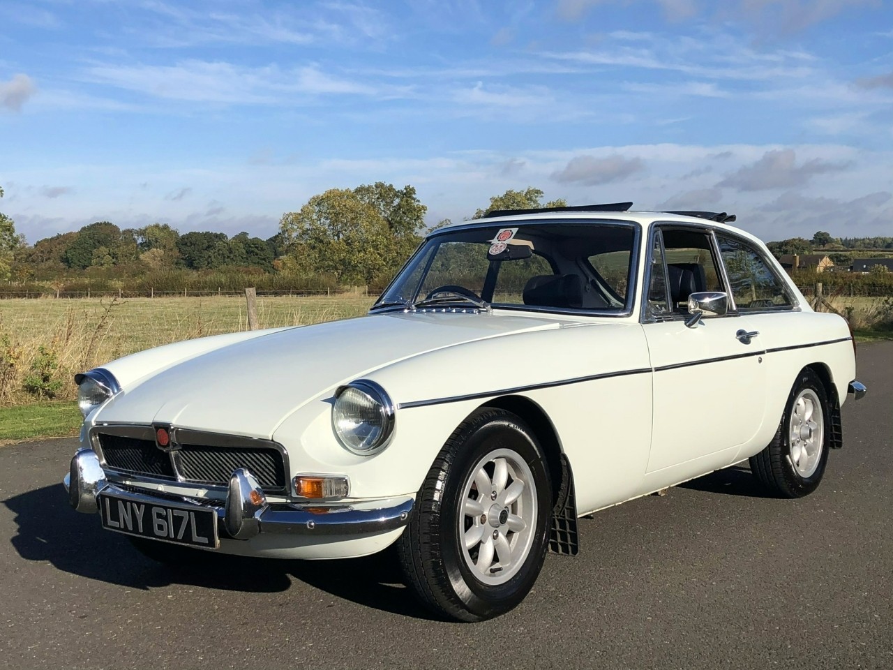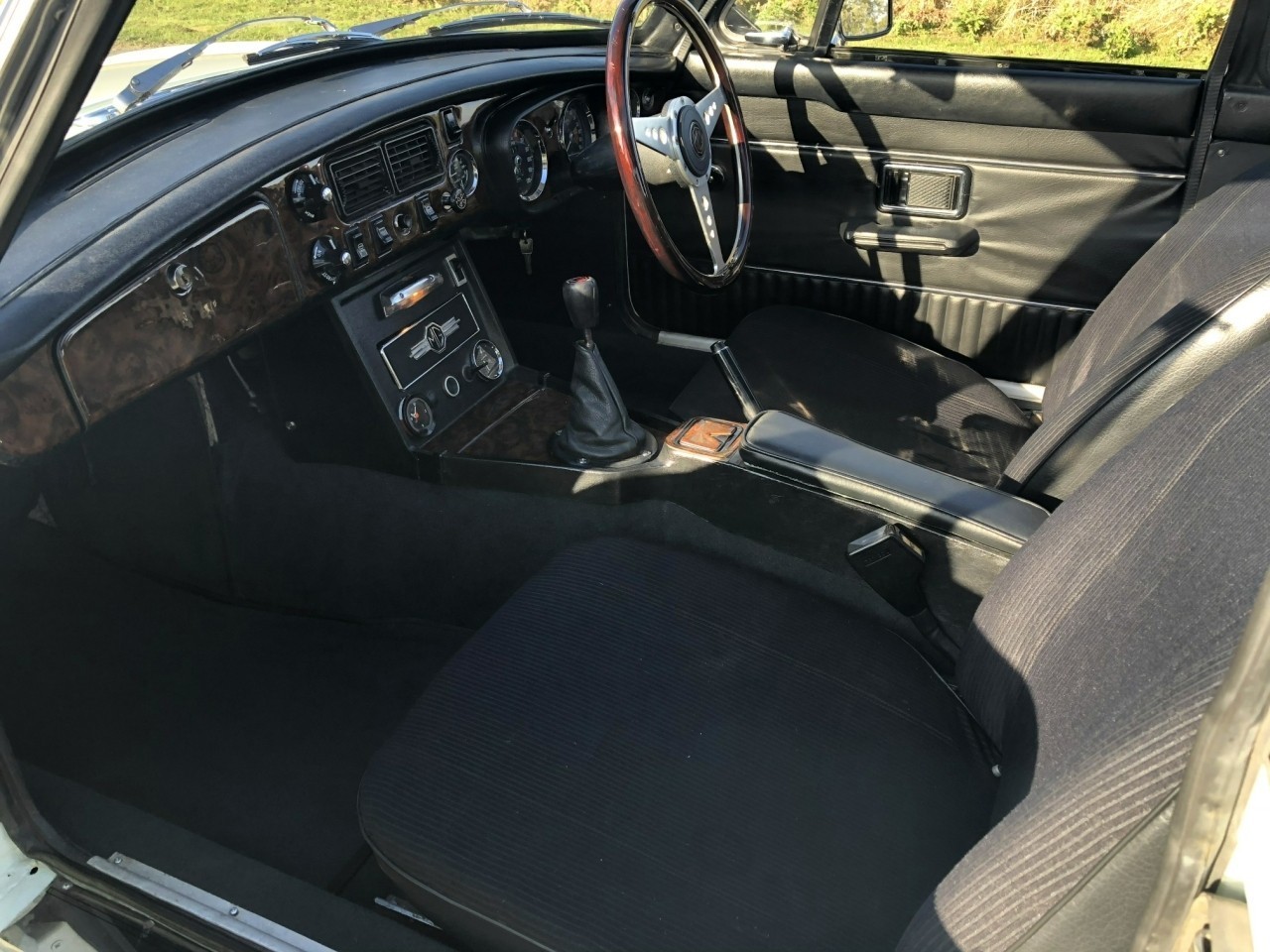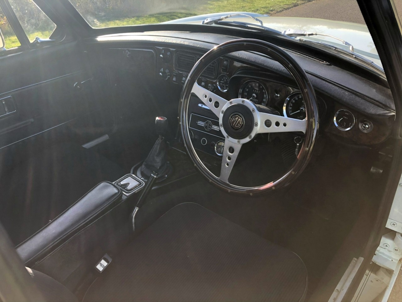 1972 MGB GT Manual Overdrive. Glacier White with black upholstery and Webasto sun roof.