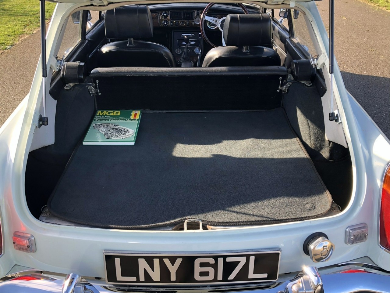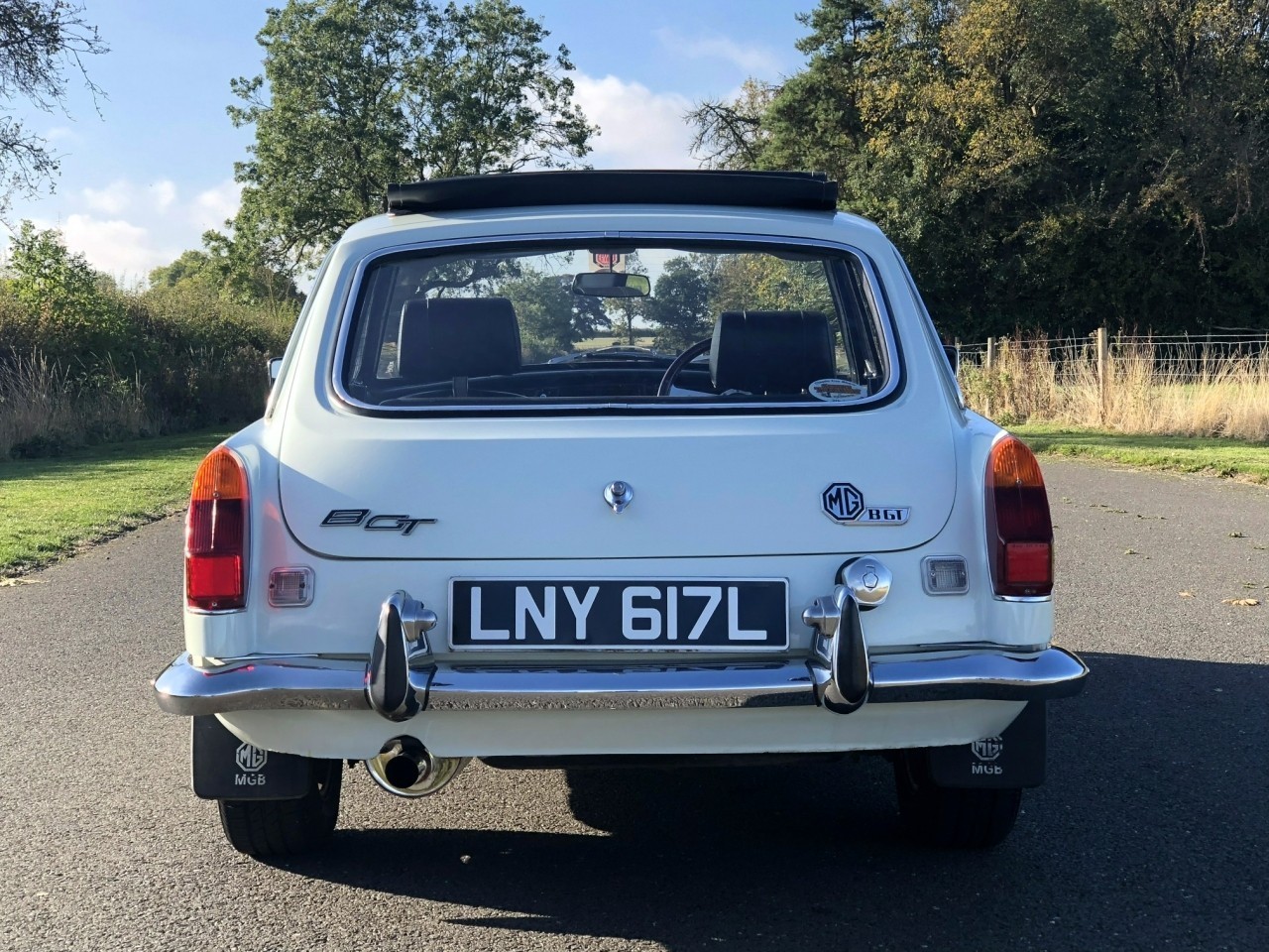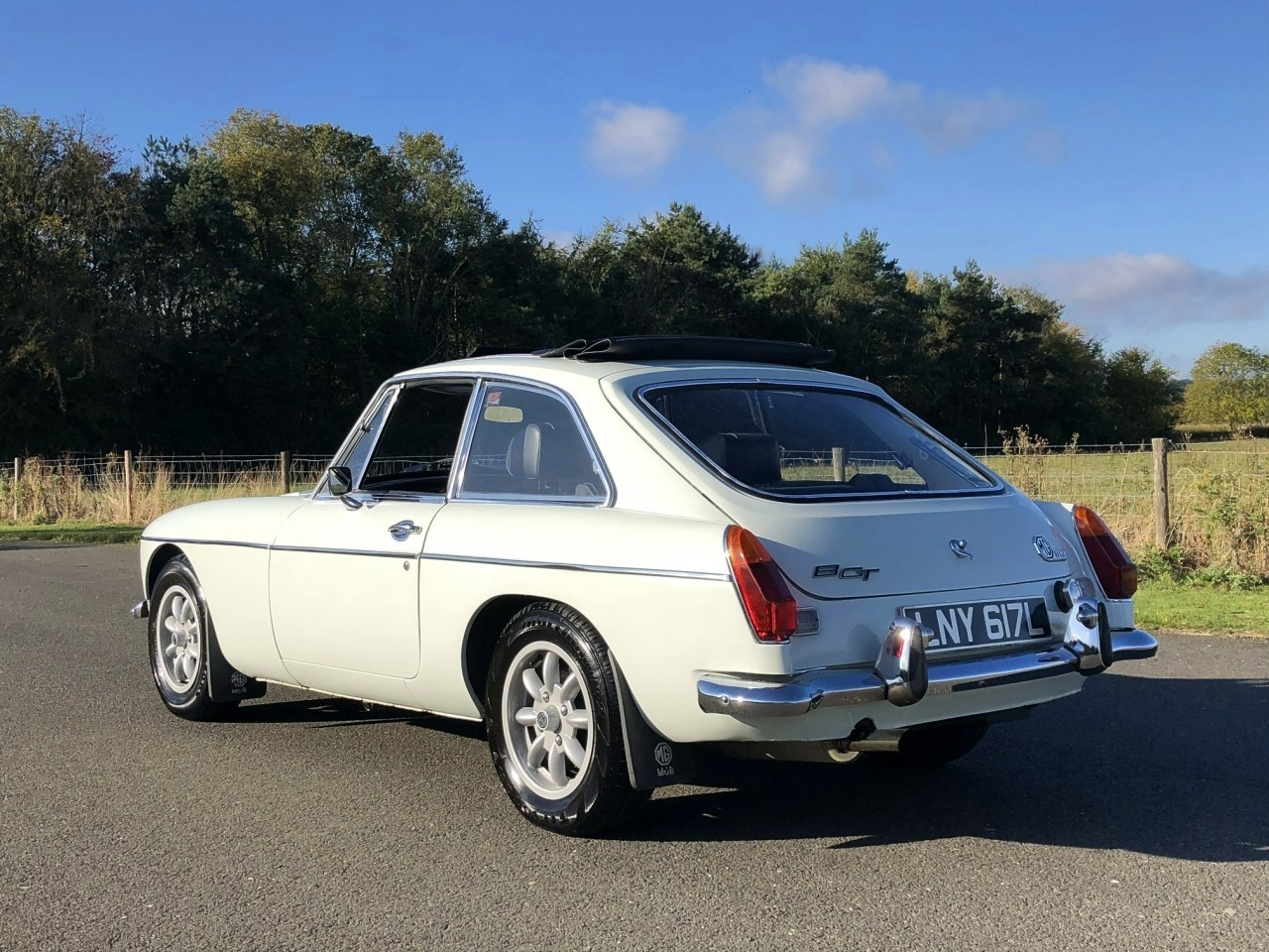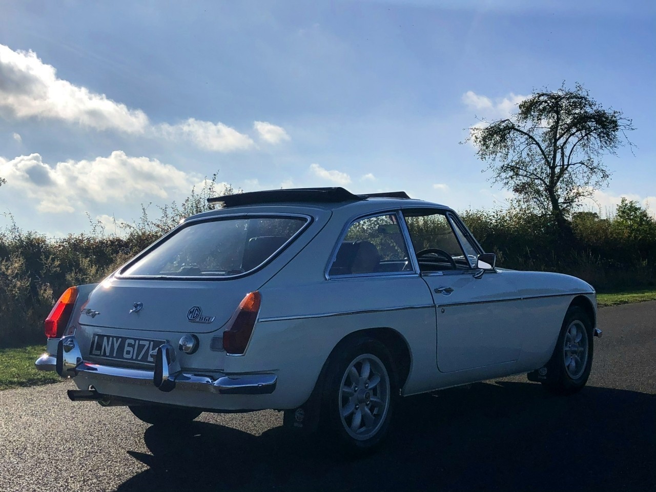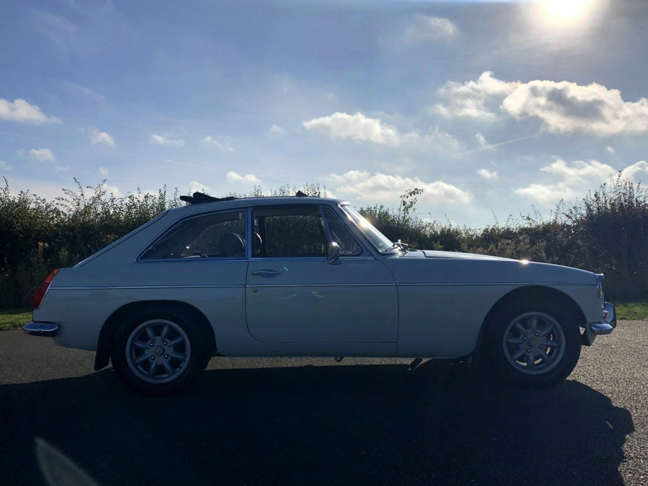 1972 MGB GT Manual Overdrive. Glacier White with black upholstery and Webasto sun roof.
