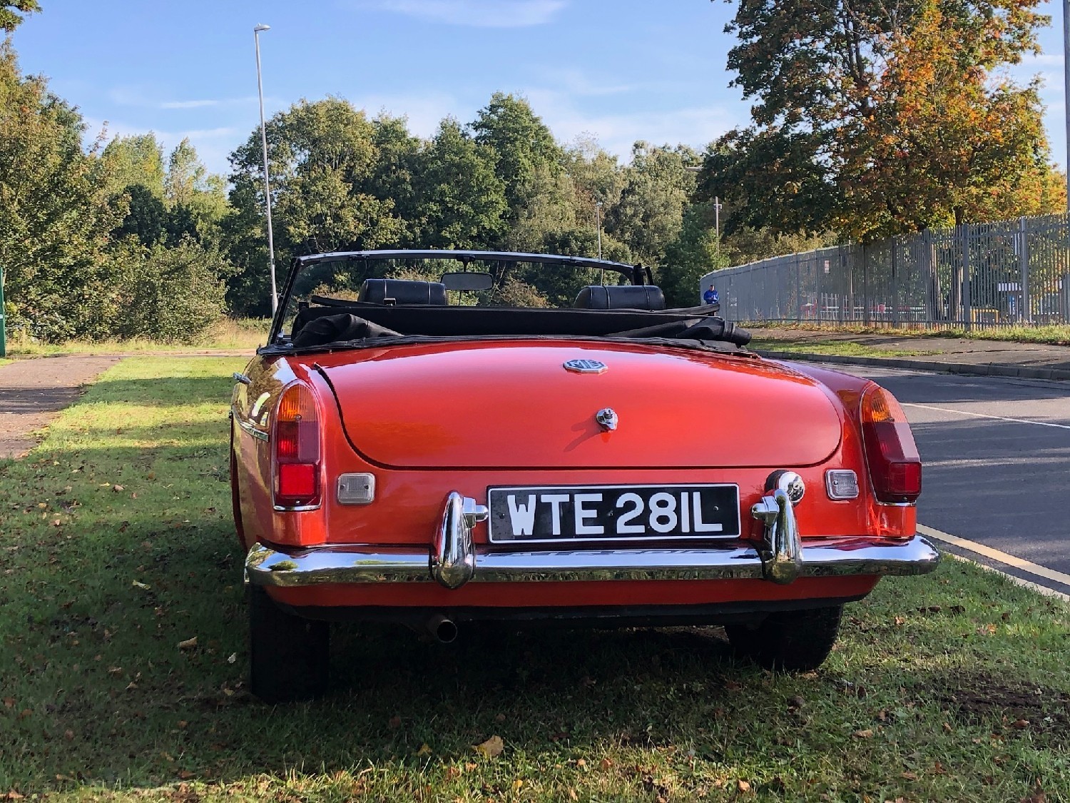 1972 MGB Roadster Manual / Overdrive. Blaze with black upholstery and a black hood. A very solid chrome bumper roadster that has been well cared for over the years. The car has been fitted with K & N air filters and a Moto Lita steering wheel, and a new black hood as also just been fitted. The car drives very well with everything working as it should, good oil pressure and a smooth operating overdrive. With the largest owners club in the world and a parts availability to match MG's are a great entry into the classic car world. This car is an ideal starter classic and just waiting to be enjoyed. There is a history folder containing some bills, invoices and old mot's and although it is now mot exempt a fresh mot will be applied upon sale for your own peace of mind. Absolutely any inspection is welcome. All major debit cards accepted. Part exchange welcome. Please call us for further information. Find us on Facebook, Instagram or visit www.morseclassics.co.uk.