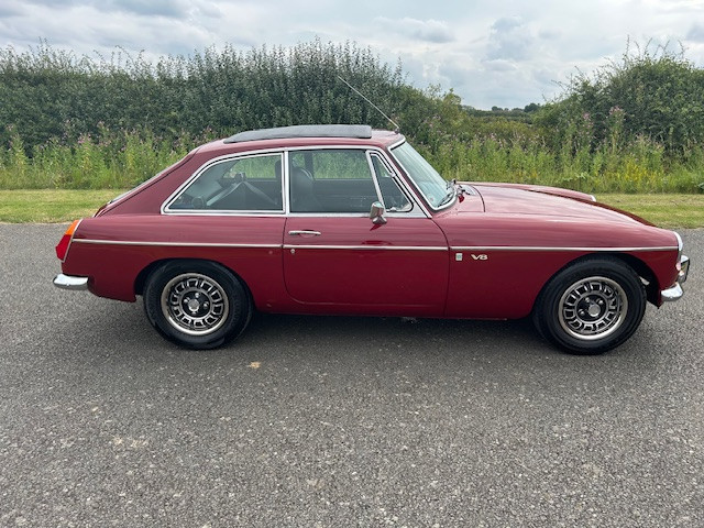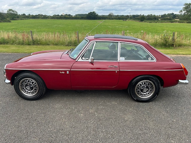 1974 MG BGT V8 in Damask red and black interior. This lovely MG BGT V8 is fitted with the Rover V8 engine, Newtronic electronic ignition, a full-length Webasto sliding sunroof and Lucas front driving lights. Finished Damask Red paint over black interior, with factory chrome bumpers, and the original V8 alloy wheels, the MGB has clearly had a significant restoration in the past which is still standing the test of time. This MG presents very well and upon test drive and drove very well with a strong V8 engine, this MG was a real pleasure to drive. A genuine V8 chrome bumper car that would be a great addition to any collection or to be used as a good fun driving car. Absolutely any inspection is welcome. All major debit cards accepted. UK mainland delivery included. Please follow us on Facebook and Instagram @morseclassics