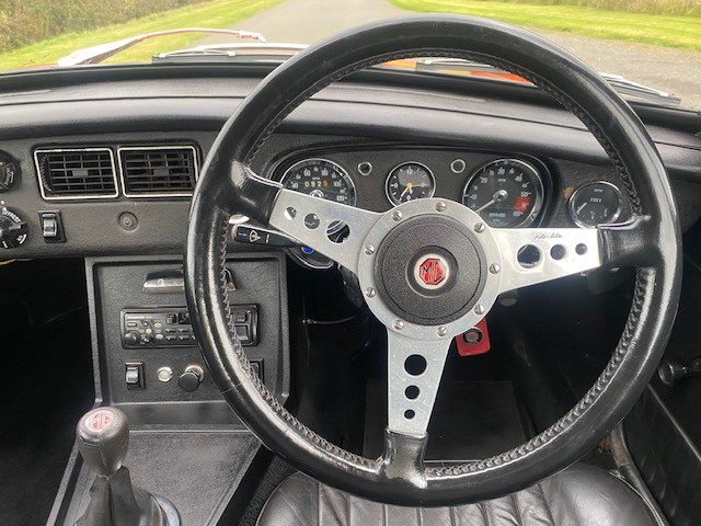 According to its accompanying British Motor Industry Heritage Trust Certificate, chassis GD2D1816G was built between October 12th and November 28th 1973 and despatched to dealer T. Startin Ltd of Aston, Birmingham early the following month. Finished in Blaze Orange with Black upholstery, the 2+2-seater’s original specification also included overdrive and cast alloy wheels. A handwritten log on file chronicles the MG’s ownership history from new until late 1994, while other paperwork and photos show that it was treated to a top-end engine overhaul, four new wings, replacement inner / outer sills, re-trimmed interior, stainless steel exhaust, repaint and reconditioned gearbox by Peter Green Motors Ltd during the late 1980s early 1990s. Acquired by its previous owner twenty-three years ago this MG V8 has been regularly maintained and MOT tested since then. Passing its most recent MOT test on 12th May 2021, the 2+2-seater was entrusted to A&J Halliday Automobile Engineers during September this year for the fitment of eight new spark plugs and a partial carburettor overhaul. This car comes with a comprehensive history folder of old MOTs, invoices and bills showing upkeep over the years. An older restoration that is standing the test of time the MG presents very well and upon test drive and drove very well with a strong V8 engine mated to a smooth gearbox with working overdrive this MG was a real pleasure to drive. A genuine V8 chrome bumper car that would be a great addition to any collection or to be used as a good fun driving car. Absolutely any inspection is welcome. All major debit cards accepted. UK mainland delivery included. Please follow us on Facebook and Instagram @morseclassics