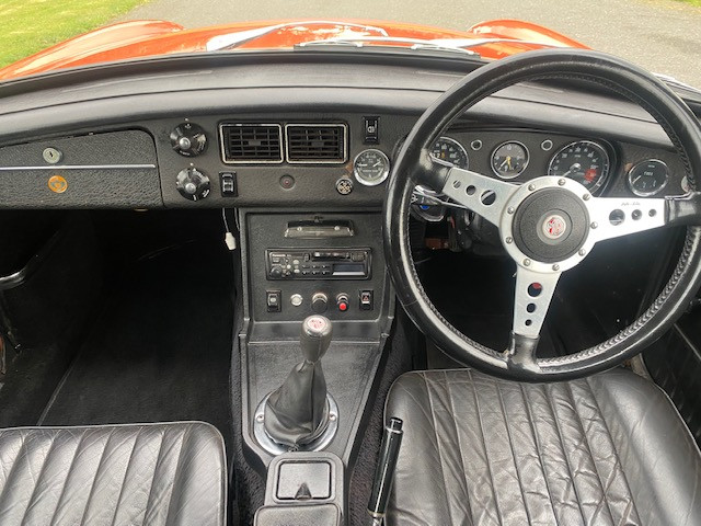 1973 MGB GT V8 Manual Overdrive finished in Blaze Orange with Black upholstery. Genuine, chrome bumper V8 that is still in its original colour.