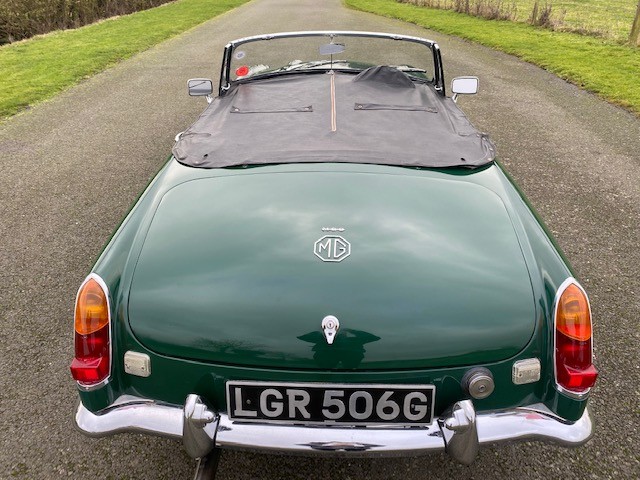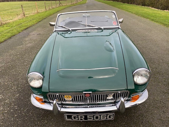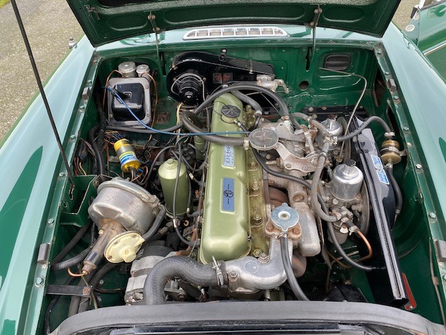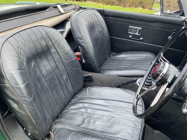 1969 MGC Roadster in British Racing Green and Black leather upholstery. A home market car first registered in Sunderland on 22nd January 1969. Covering a mere 10,000 miles over the last nineteen years, the MG has nonetheless been well maintained including an upgrade to adjustable Spax front shock absorbers. Benefiting from a new water pump and brake system overhaul in 2017, the following year saw it treated to a new radiator and fresh clutch (the latter installed c.2,000 miles ago). Shod with new Goodyear radial tyres all round. Starting readily upon test drive and pulling well through the gears, the Roadster has no trouble keeping up with modern traffic and boasts a functioning overdrive. Self-evidently the subject of past restoration work, the two-seater remains highly presentable. The Black, rip-free hood stows away under a matching cover, while the engine bay is nicely detailed even down to the ‘Coopers’ sticker on the air filter box. Passing its last MOT test on 26th February 2020 with ‘no advisories’, this handsome MG C Roadster is offered for sale with history file including an original handbook, workshop manual and bills / MOTs dating back to 2001. This MG is just waiting to be enjoyed in new hands. Absolutely any inspection is welcome. All major debit and credit cards accepted. Please contact us for any further information. UK mainland delivery included. Follow us on Facebook and Instagram @morseclassics