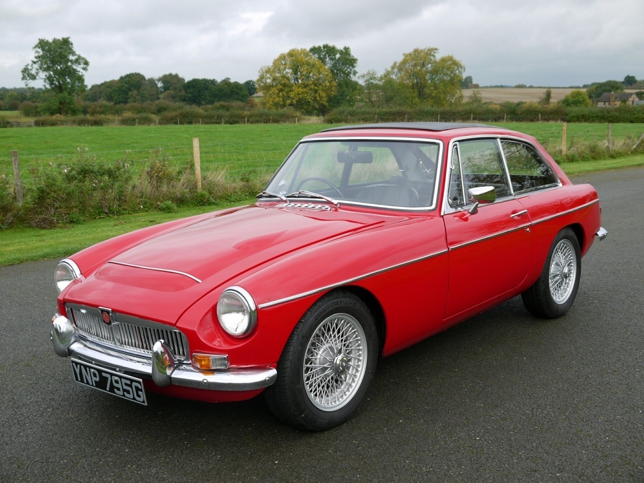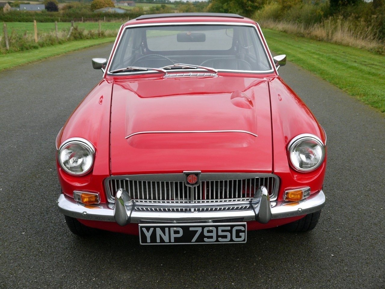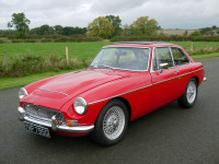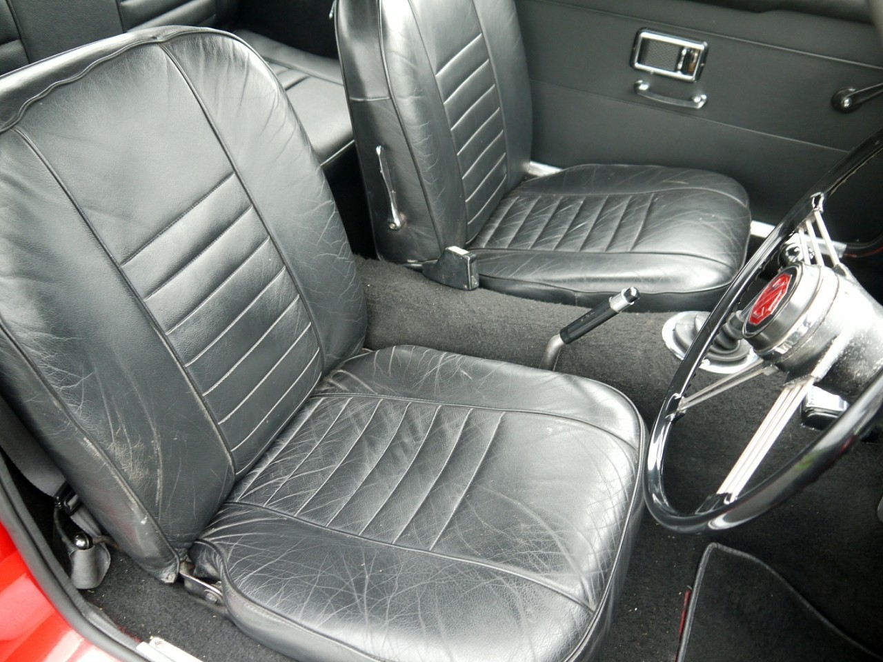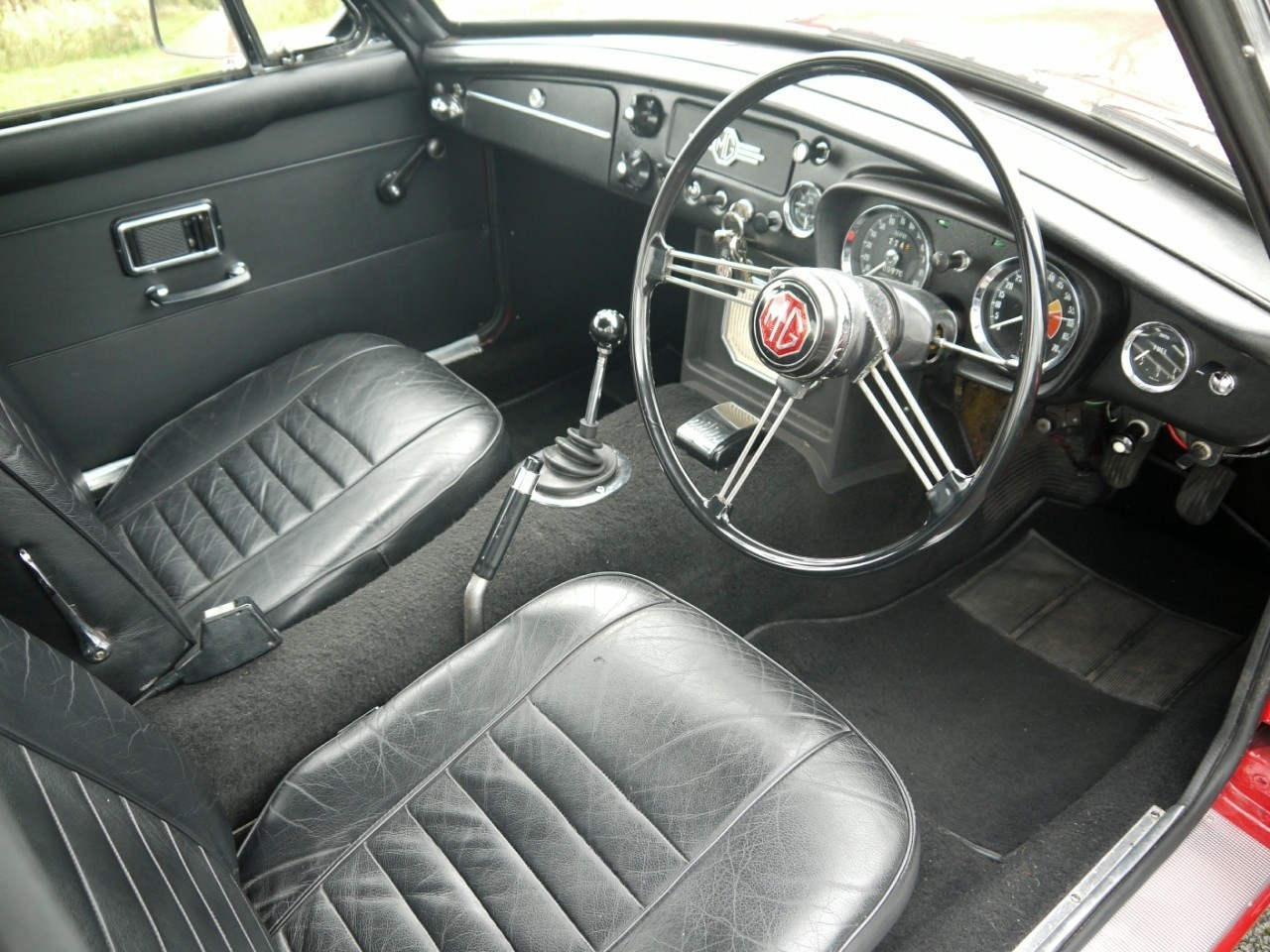 1969 MGC GT. Manual with Overdrive. Tartan red with black leather upholstery and a black