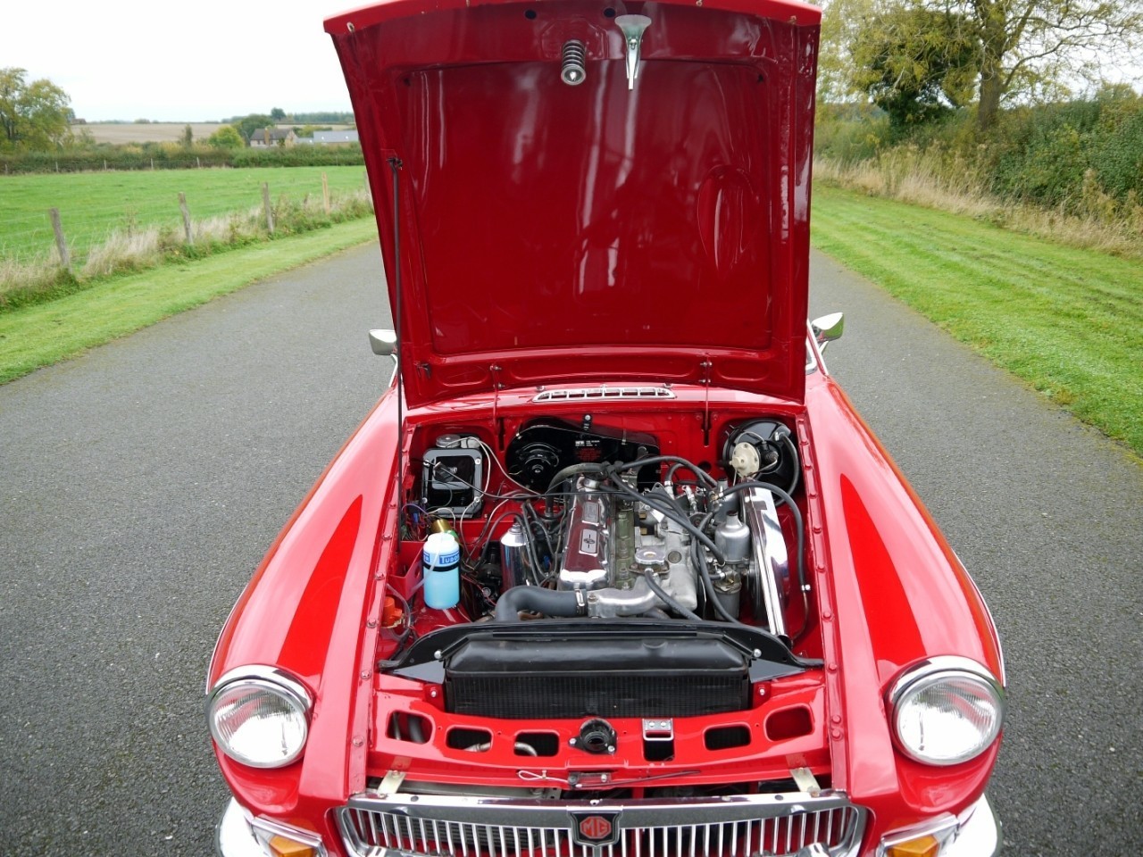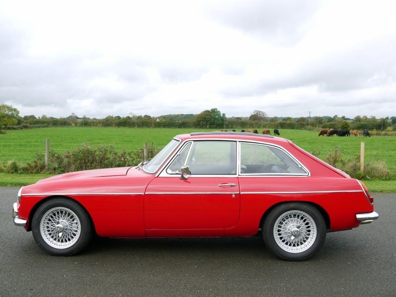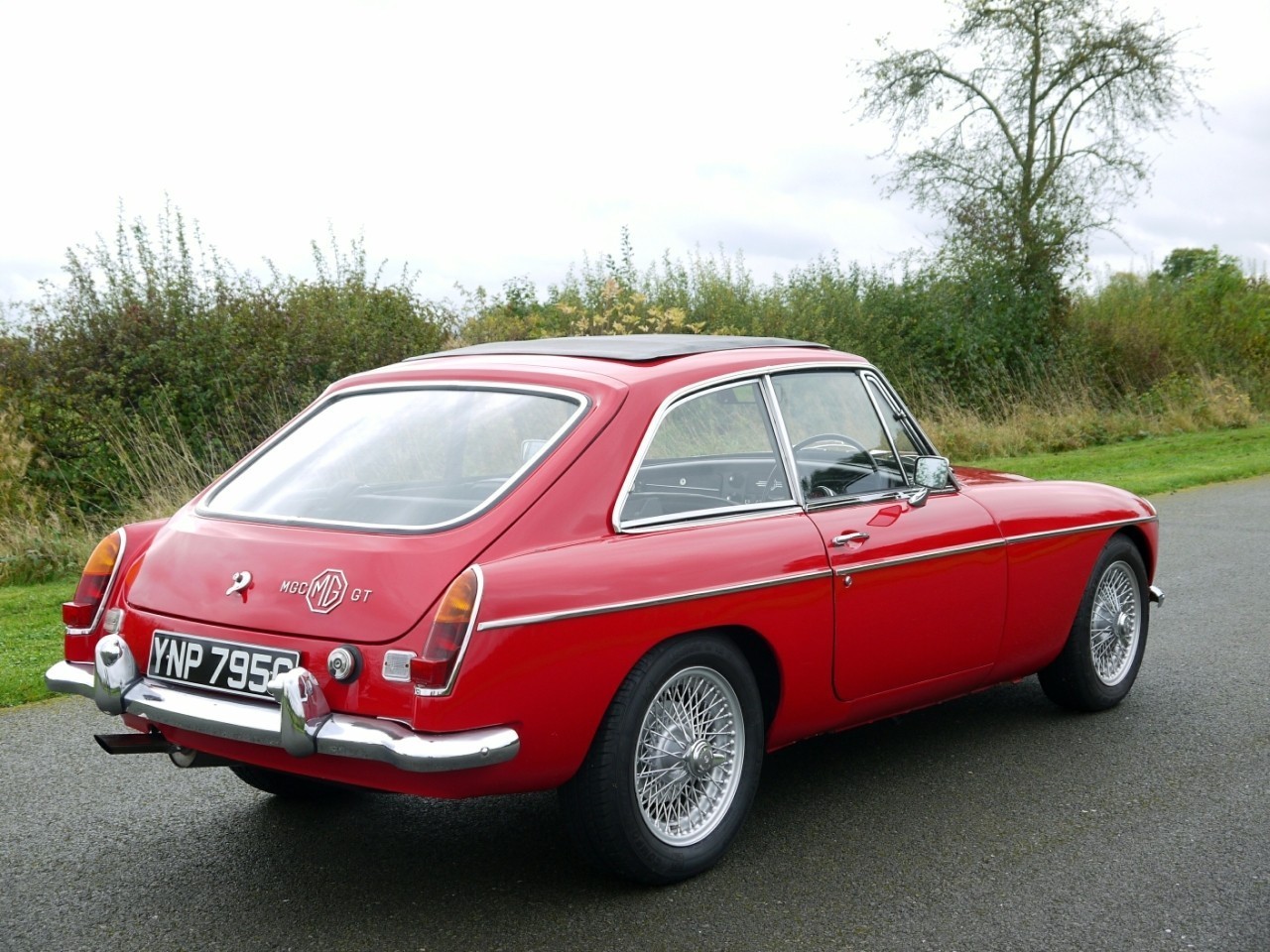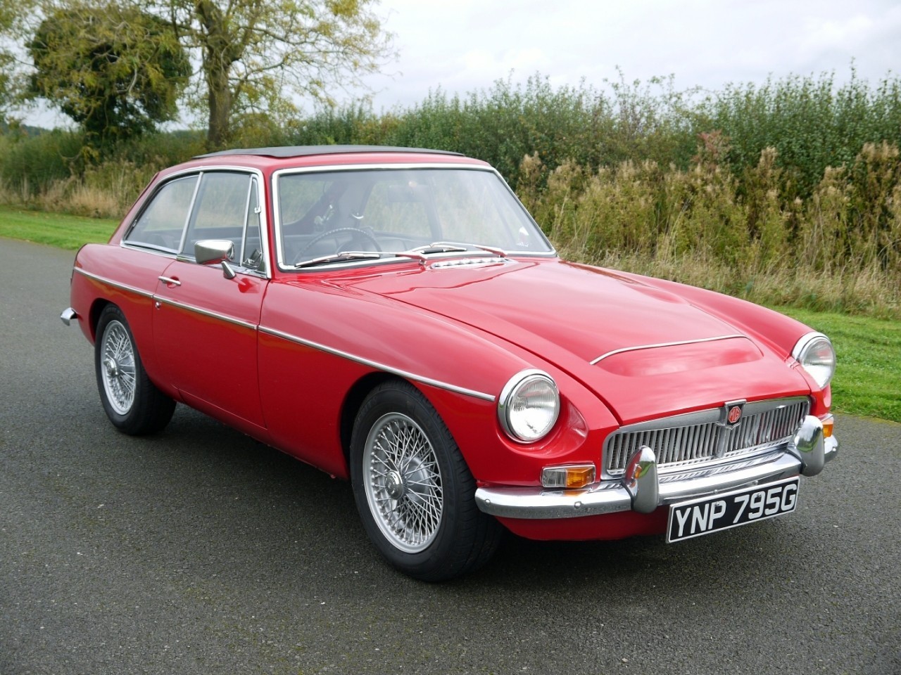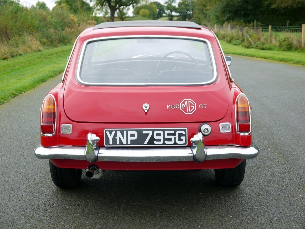 1969 MGC GT. Manual with Overdrive. Tartan red with black leather upholstery and a black