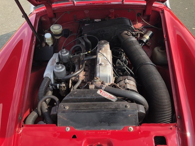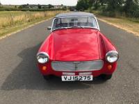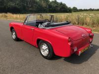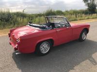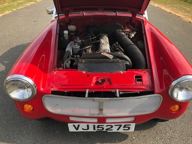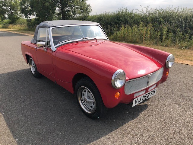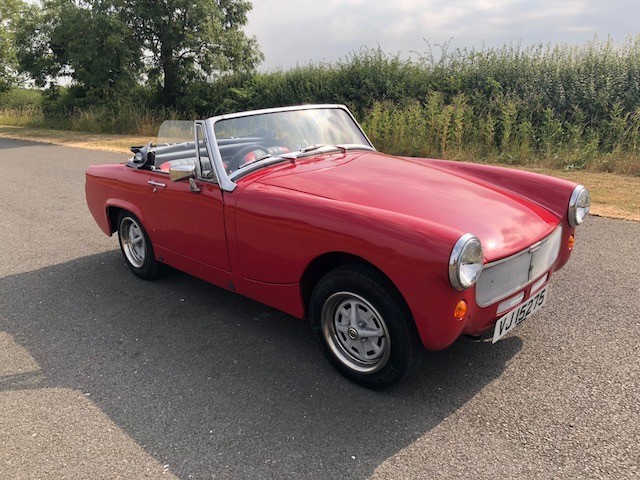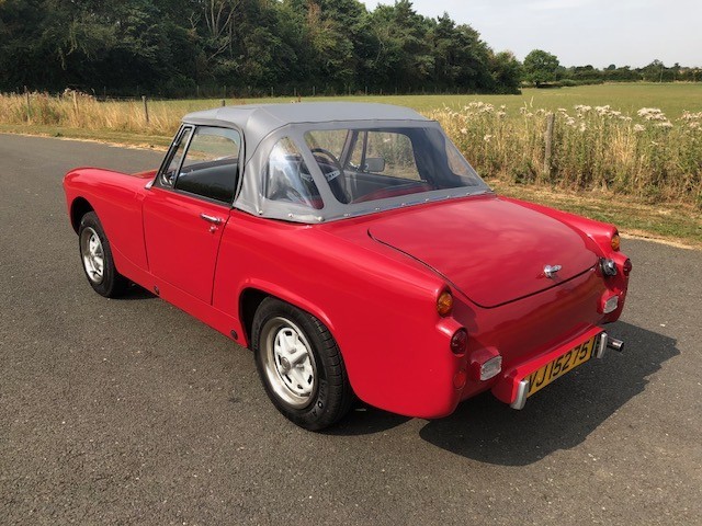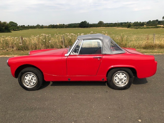 First registered in January 1978, this particular Midget 1500 has had just two owners since 1998 and really stands out from the crowd with both bumpers removed, a mesh front grille, subtle bodywork modifications and sporty bucket seats. An invoice on file shows that it was fully restored in 2002 by Classic & Custom Cars of Kidderminster, including a full body restoration and a repaint in Tartan Red, all the body mods being lead loaded. The fuel tank was also renewed along with all the exterior lamps and the door, boot and window rubbers. The engine was overhauled with many new parts including the water pump, radiator, fuel pump, timing chain and tensioner, propshaft etc. The braking system was also totally renewed and the suspension rebuilt with many parts replaced. The wheels were refurbished and fitted with new tyres and the interior retrimmed with new carpets, new Cobra sports seats trimmed in red and grey, new inertia reel seat belts and a new grey soft top and tonneau cover.