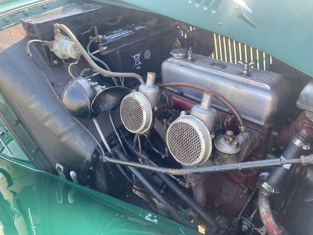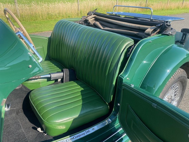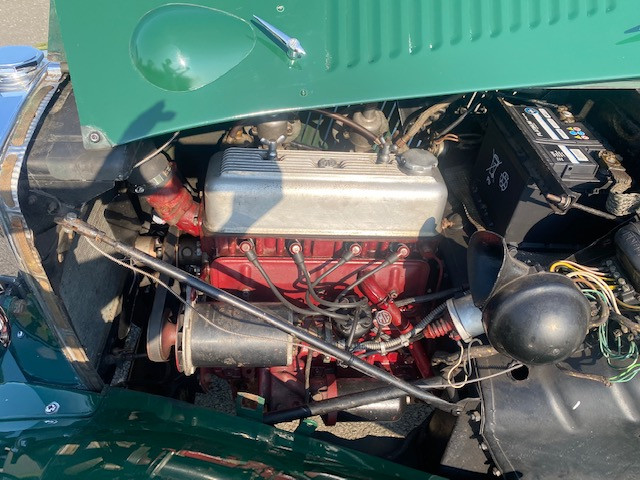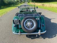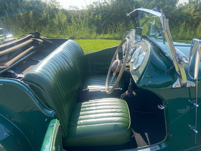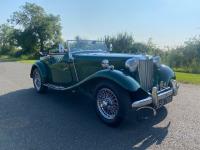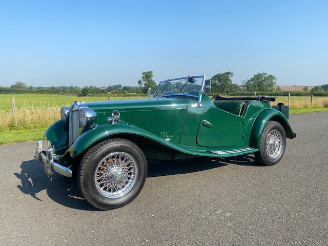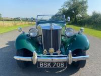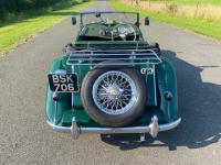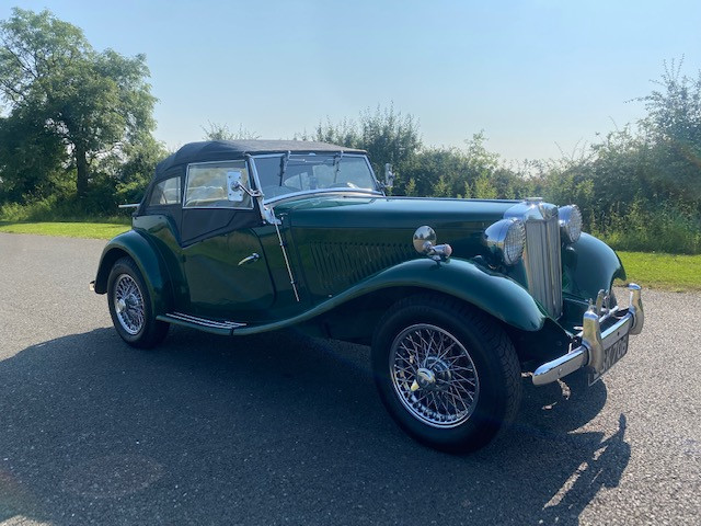 1953 MG TD 1250cc. British Racing Green with Green leather upholstery and black hood, side screens and tonneau cover sitting on wire wheels. This delightful TD was exported to the US when new and then repatriated to the UK in 1990 and immediately underwent a total restoration converting the car to RHD which we have photos of in the history file, an older restoration standing the test of time. The engine was rebuilt in 2004 and upon test drive runs and drives extremely well with a strong engine and smooth gearbox. Supplied with a comprehensive history file dating back to 1990 and a V5C registration document, bills and a number of MoT test certificates, she is ready to be enjoyed. The car presents very well and would grace any classic meet and holds its own in modern traffic. Absolutely any inspection is welcome. All major debit cards accepted. UK mainland delivery included. Follow us on Facebook and Instagram @morseclassics
