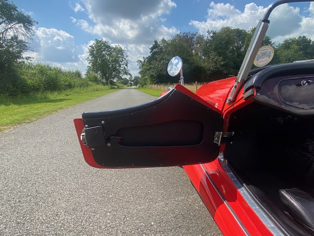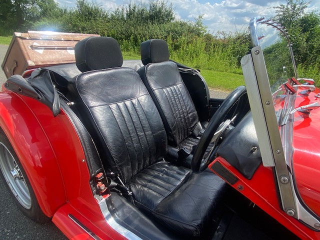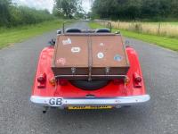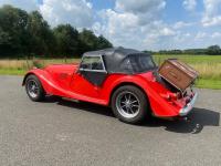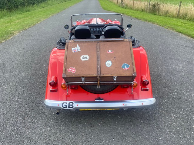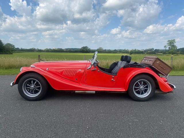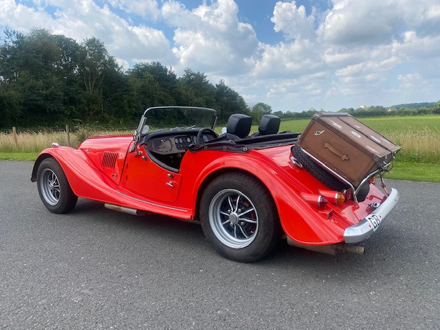 1984 Morgan 4/4 Ford CVH 1600 engine and 5 speed Ford manual gearbox. In red with black vinyl interior black hood and side screens. The suitcase on the rear can be removed if you wish but it's very handy for British holidays.
