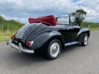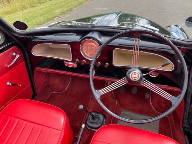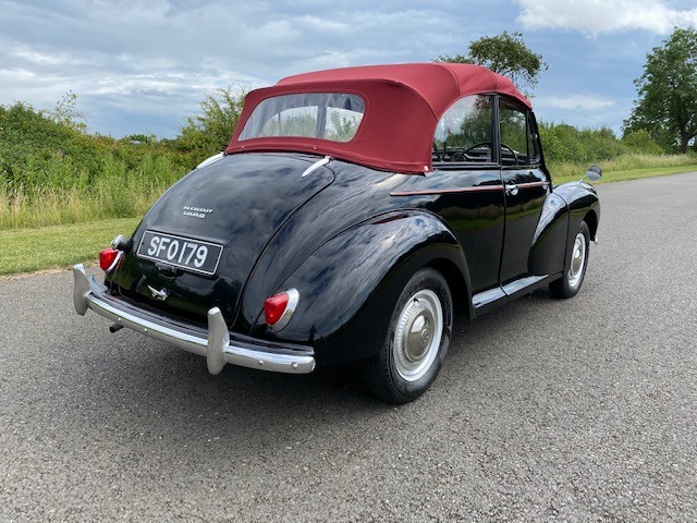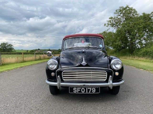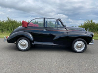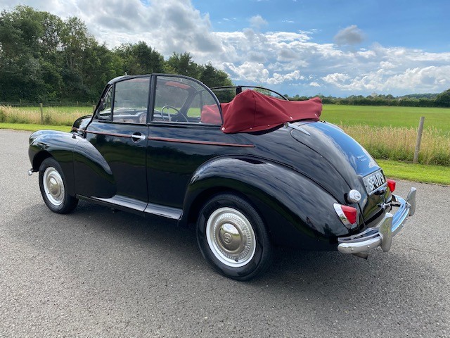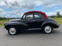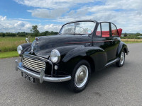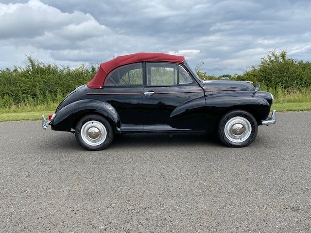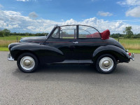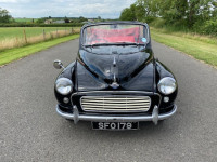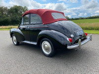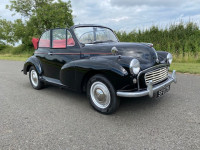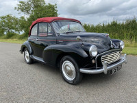 1963 Morris Minor Convertible 1098cc. Black with red leather interior and matching red hood. This post production convertible has been used by the previous owner sparingly for weekend trips when the sun has been shining and kept in the garage in between uses. The leather upholstery has been refurbished and she has a red mohair hood which is like new. The paintwork is super with very good panel fit and correct door gaps . On test drive the Minor performed without fault with a very strong engine and smooth gearbox. If you are looking for a car that is ready to enjoy then this is well worth a look. You will not be disappointed with this wonderful classic and viewing is highly recommended. Remarkable in both quality and presence, this is a vehicle that any enthusiast would be very proud to own and would adorn any collection. Now MOT and tax exempt. Absolutely any inspection welcome. Please call us for any more information. All major debit and credit cards accepted. UK mainland delivery included. Follow us on Facebook and Instagram @morseclassics