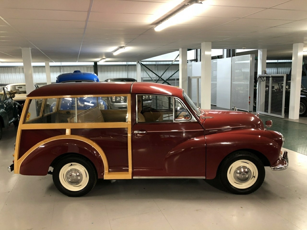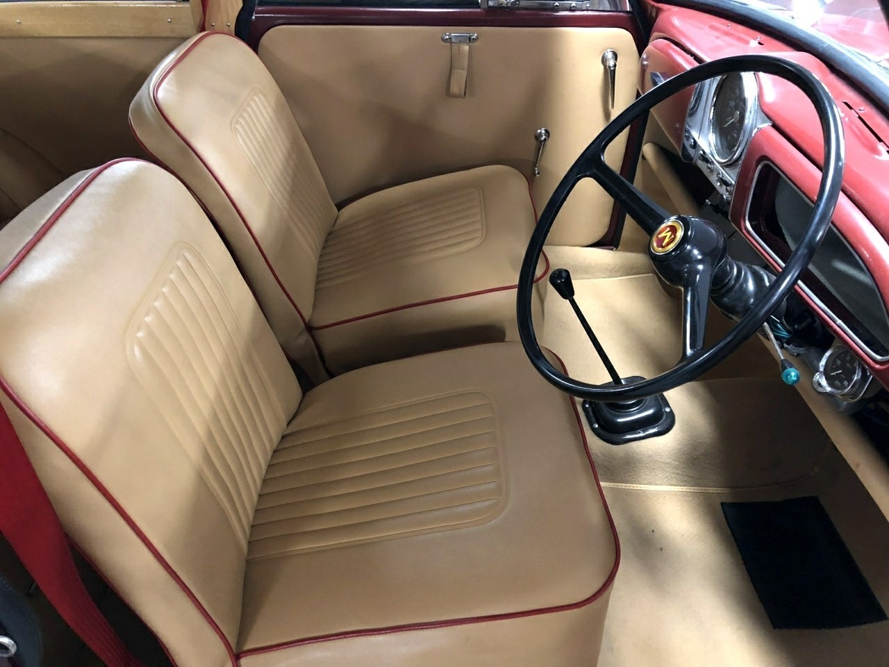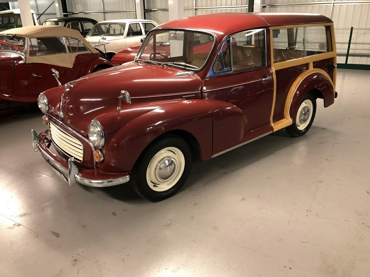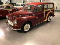 1971 Morris Minor 1000 Traveller 1098cc. Burgundy with Barley upholstery with red piping. This