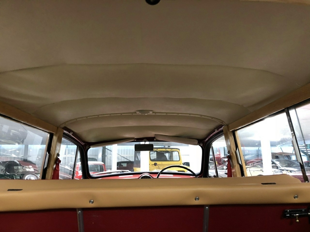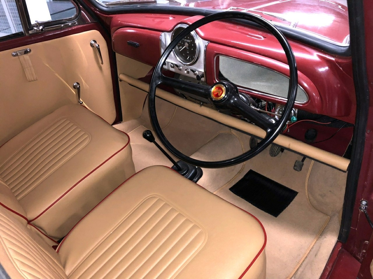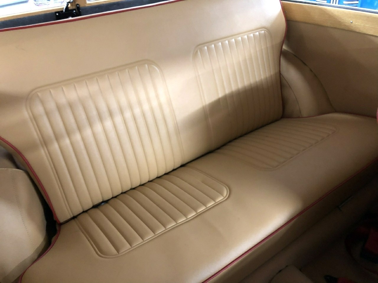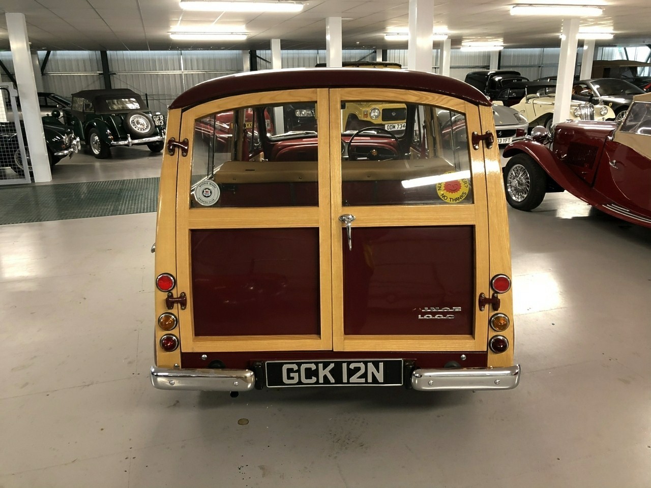 1971 Morris Minor 1000 Traveller 1098cc. Burgundy with Barley upholstery with red piping. This