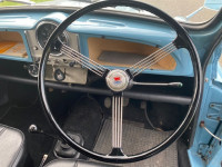 A LHD export model, it was first registered in December 1969 to British Leyland Austria KG in Salzburg and was originally fitted with rear seats. In May 1971 it got re-registered, probably due to the fitment of two side windows in the rear panels, which is why DVLA decided it should have a J plate today, this is due to DVLA using the registration date in Austria giving it a J plate rather than the 1969 manufacture date to register it as a G plate which all adds to this vans history.. Around 20 years ago the van was acquired by Manfred Kubik, a well-known car restorer in Vienna, who rebuilt it and used it to promote his business, having it sign-written and repainting it from beige to VW pale blue with cream rear mudguards, side panels and rear doors. A rear tow-hitch was also fitted. A frequent visitor to Kubik’s workshop due to her husband’s involvement with an impressive collection of classic cars in the area, the previous owner had long admired the van and finally persuaded Manfred to sell it to her in 2010. As part of the deal it was agreed that all the cream paintwork would be restored to blue and the sign-writing removed before delivery, except for the words ‘Manfred Kubik’ on each side.