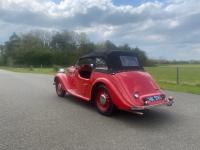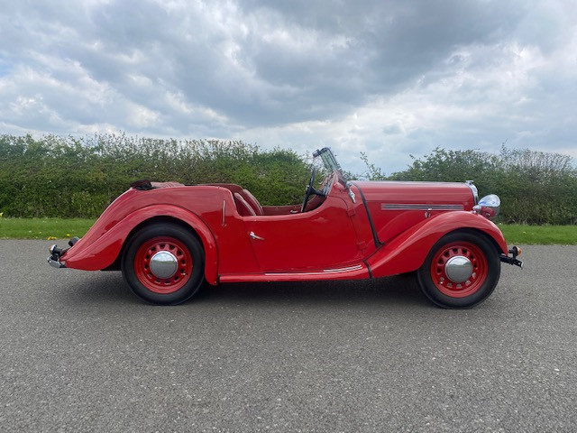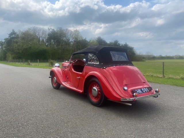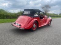 1952 Singer Nine 4A Roadster in Red with red interior. The original Singer 9 Roadster was launched in March 1939; production was suspended for the duration of the Second World War then restarted. The Model was upgraded in 1949 to the 4 A version and was given a 4-speed gearbox and the 1074 cc engine was moved forward to create a roomier 2 door 4-seater interior, furthermore the hood and side screens are so designed as to provide closed car comfort when the weather is unfavourable to open air motoring. With the hood raised and screens in position the roadster retains its sporting lines and at the same time gives protection with ample head room. This wonderful example, which shows signs of an older restoration that is standing the test of time is finished in red with a red interior with a black hood (we know the car has side screens we are just trying to locate them) this Singer was registered in February 1952 to a Mr. Laurence Ellis of Great Sutton, who kept till December 1952, 31 years in total. It was then purchased by a Mr. Harold Jones of Wrexham, it then changed to a Mr. Vic Morris of Oswestry, and it was acquired by a Mr. Peter Smith of Skipton and then on to Brian O’Donnel in 2015 a founder of Memory Lane Classics who used the car as a show vehicle. Upon test drive this car was a real pleasure to drive, turning heads and attracting waves. Perfect for the coming summer months she drives with a strong engine which is capable of keeping up with modern traffic. A great 4 seater convertible ready to be enjoyed and enjoy taking friends and family out in. Any inspection welcome. All major debit cards accepted. UK mainland delivery included. Follow us on Facebook and Instagram @morseclassics.