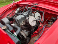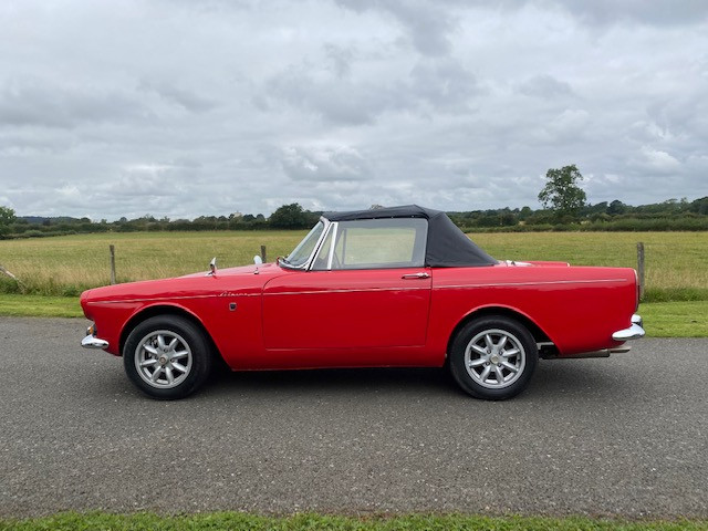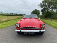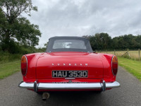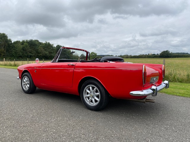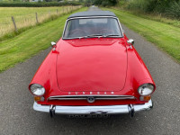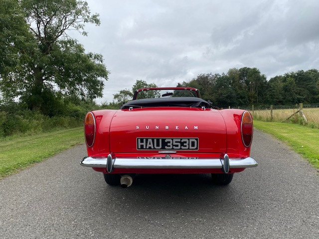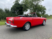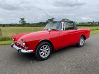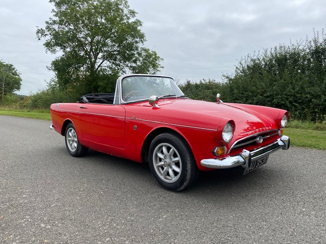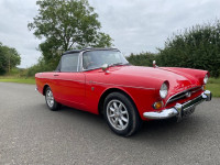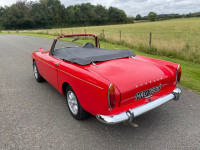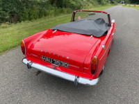 1966 Sunbeam Alpine Series V Manual/Overdrive in Signal Red with black interior, black hood and tonneau. The final version of the Sunbeam Alpine had a new five-bearing 1,725 cc (105.3 cu in) engine with twin Zenith-Stromberg semi-downdraught carburettors producing 93 bhp and retained the series IV rear styling with the fins largely removed. This Sunbeam was first registered in May 1966 to a Mr Charles Lewis of Nottingham as shown in the original buff logbook. The car is an older restoration with invoices on file from 2013 and has covered less than 200 miles since as it has been kept in dry storage. The restoration is still in very good condition with the paint and chrome all still bright. This is a good solid usable Sunbeam that drove extremely well on test drive with a good strong engine and a smooth gearbox with working overdrive. The car comes with a small history folder with some old invoices and MOTs and a workshop manual. A very attractive looking car that is ready to be used and enjoyed in new hands. If you are looking for a car that is ready to enjoy then this is well worth a look. Viewing is highly recommended. Absolutely any inspection welcome. Please call us for any more information. All major debit cards accepted. UK mainland delivery included. Follow us on Facebook and Instagram @morseclassics