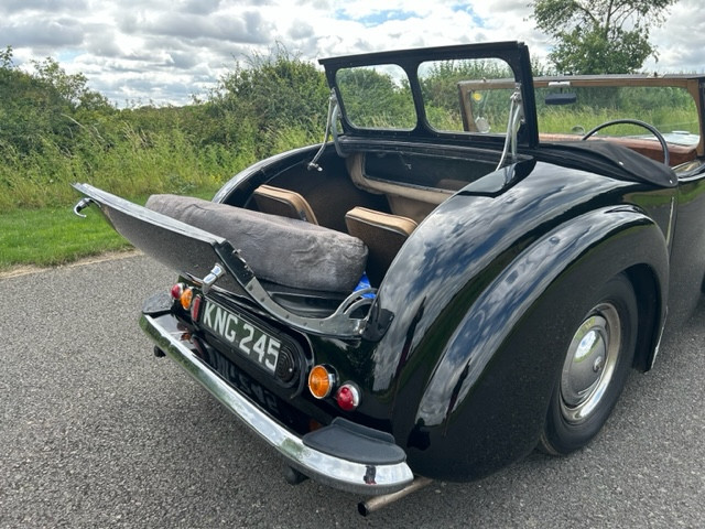 Registered in July 1948 KNG 245 is presented in Black with contrasting tan leather interior which has a lovely patina. The car had a restoration in 1977 with the invoice on file and has been owned by its current keeper since 1984, always kept dry stored and only used on sunny days. The restoration really has stood the test of time, there is some light wear and tear but is still in a lovely condition for a car of this age and a car that hasn't been restored in over 40 years. On collection this Roadster fired into life and drove extremely well with a great engine pull and smoth gears on the coloumn change, I drove her the 30 minutes from collection and thoroughly enjoyed this wonderful car. The car is only being sold due to old age but has been well cared for a loved over its ownership, it is now ready to be enjoyed in new hands. Absolutely any inspection is welcome, and viewing is highly recommended. All major debit cards accepted. Free U.K mainland delivery. Please call for any further information. Follow us on Facebook, Instagram and visit www.morseclassics.co.uk.