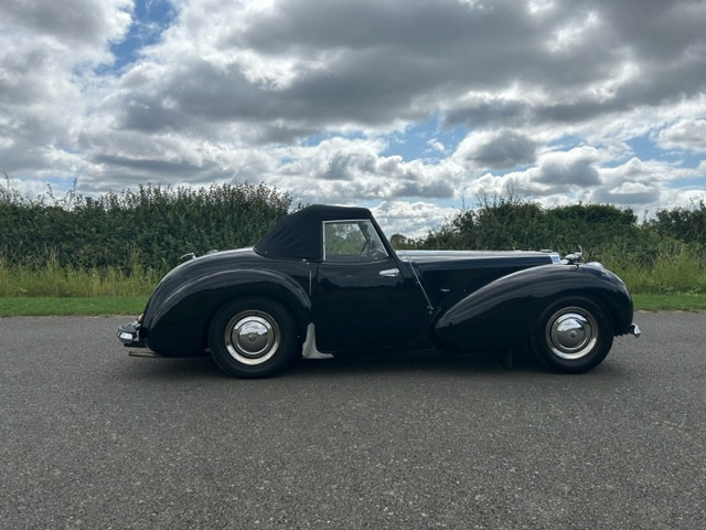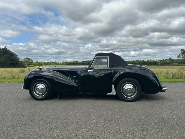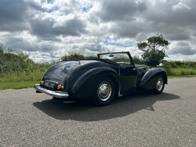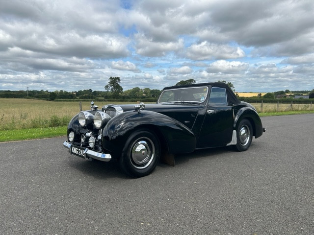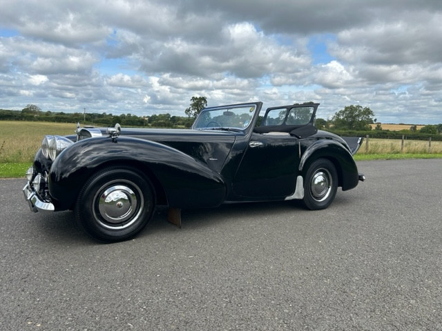 1949 Triumph 2000 Roadster in Black with tan interior and a black mohair hood.