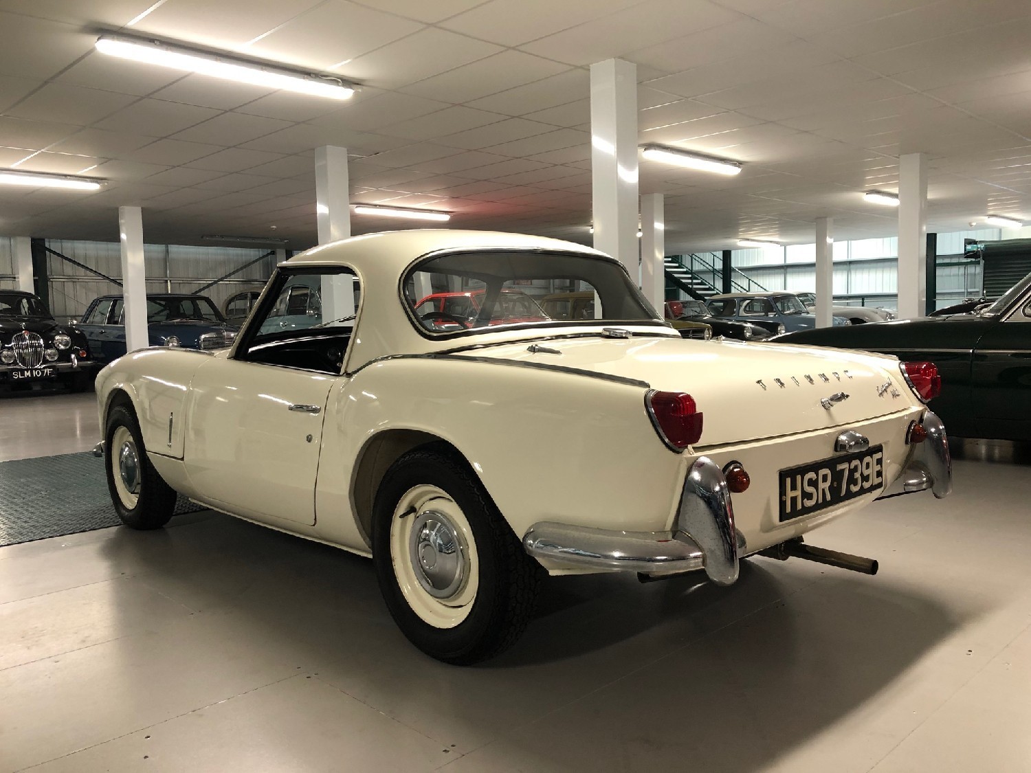1966 Triumph Spitfire Four MK II 1300cc. Triumph White with black upholstery. Factory white hardtop and white soft top. This super Triumph has covered just 35,000 miles from new which we believe is correct with lots of old mots to verify this. Only 2 former keepers from new, the previous owner having had the car since 1987. MK II Spitfires are becoming a rare sight on our roads now, especially with the factory hart top still in place. The car is a real credit to its last owner and no expense has been spared, the car has been very well cared for and only enjoyed on summer days. The paintwork is fantastic and the upholstery showing no sign of wear. The car drives just as it should with a very strong engine and smooth gearbox. The engine bay is very tidy and the underside is still body coloured. It is very hard to find an early Spitfire in this condition and we think this car is well worth a look. Absolutely any inspection is welcome and viewing is highly recommended. All major debit cards accepted. Part Exchange welcome. Free U.K mainland delivery. Find us on Facebook, Instagram and at www.morseclassics.co.uk. Please call us for further information.