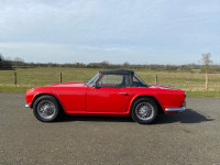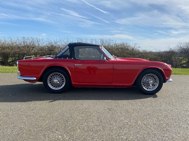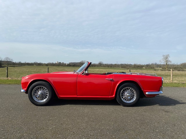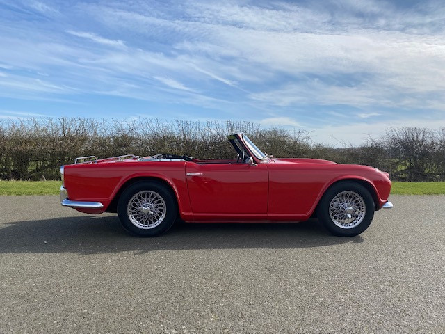 This very nice, original, right hand drive 1964 Triumph TR4 with overdrive has been very well maintained by all of its previous owners. The last owner purchased this car in 2016 and went right through the cars mechanics in 2017 to prepare it for tours and rallies, which he did covering only 6,000 miles in five years. At the end of 2021 he had the car painted in its original colour Signal red. This TR4 is supplied with a V5, a history file containing photocopies of previous registration documents, old MOTs going back to 1993 and a large number of parts invoices starting in 2017 and an MOT certificate showing the car has an MOT till December 2022 with no advisories. The Triumph starts on the button and drives very well with a strong engine and smooth gearbox with working overdrive. A luggage rack and wire wheels complete the look of this very smart TR4. In summary if you are looking for a very usable TR4 that would not look out of place on the showground then this Triumph is well worth a look. Absolutely any inspection is welcome and viewing is highly recommended. All major debit cards accepted. UK mainland delivery included. Please follow us on Facebook and Instagram @morseclassics