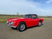 1964 Triumph TR4 Manual/Overdrive in Signal red with black leather interior and hood.