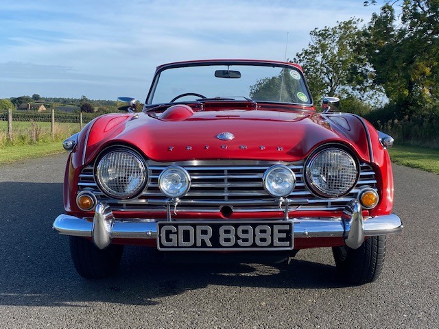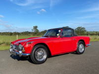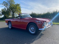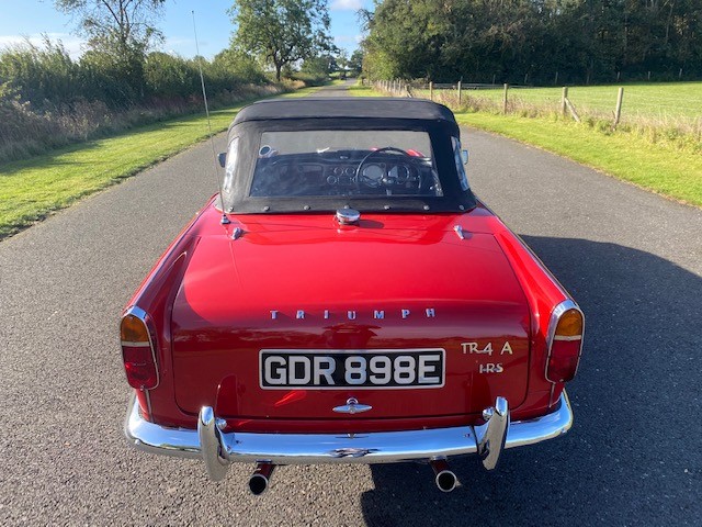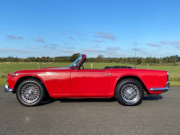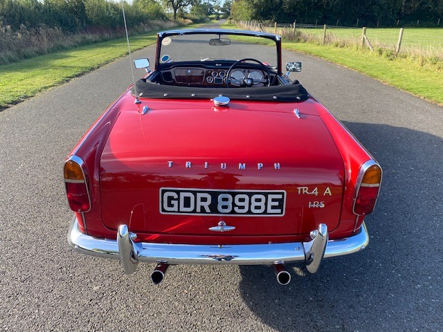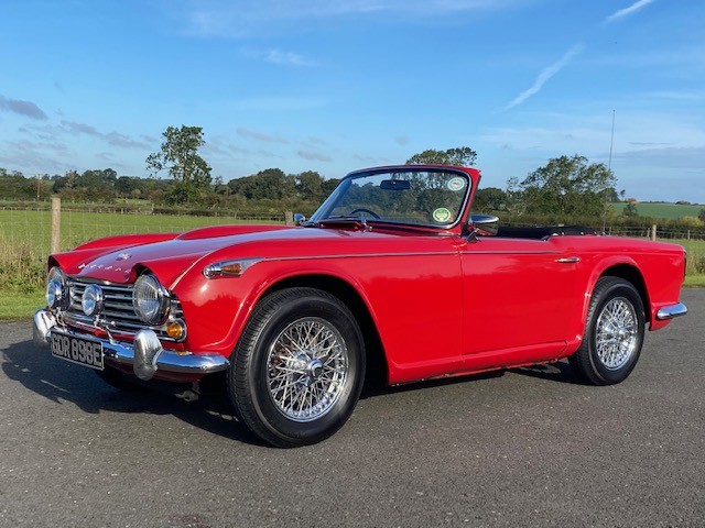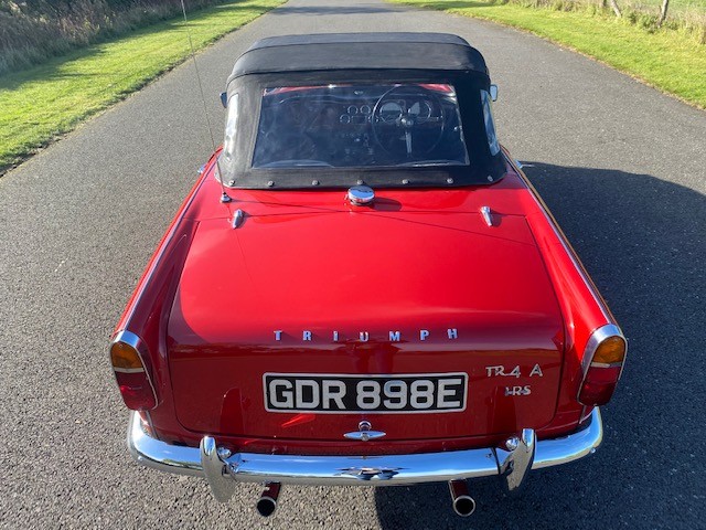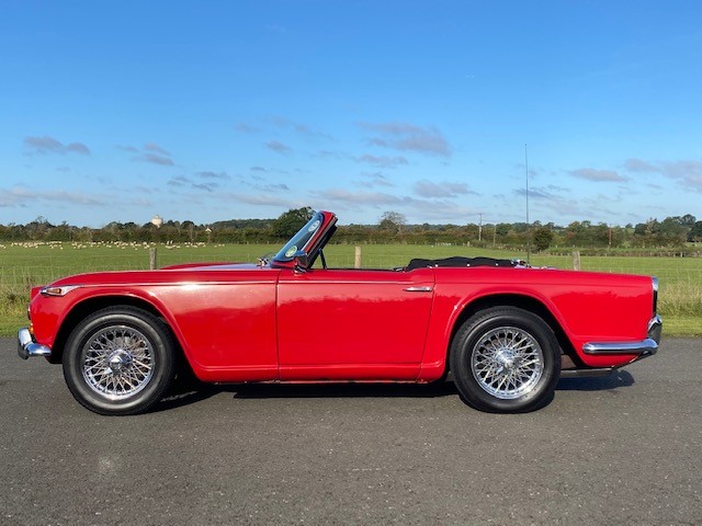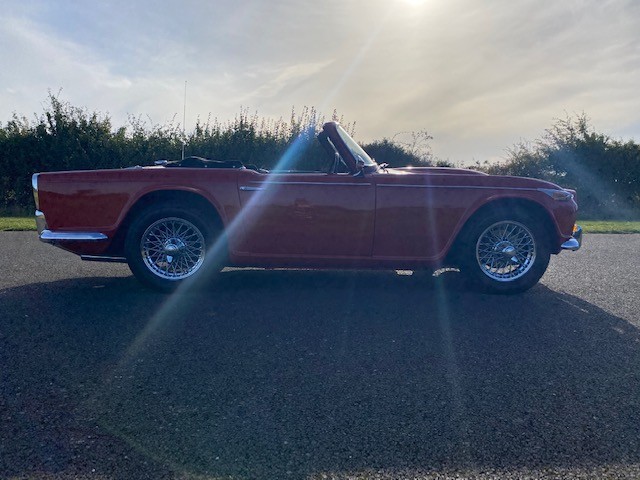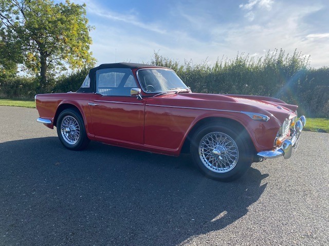 1967 Triumph TR4A IRS. Signal red with Black leather interior and Mohair hood. A UK RHD TR4A with a Heritage cerificate.