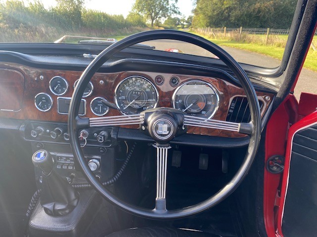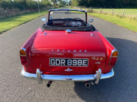 This lovely TR4A is a UK car built on 19th May 1967 and first registered in Plymouth on 21st June 1967. There is no history of the car between 1967 and 1988, but from 1988 there is a box of paperwork relating to receipts for work done, spare parts, MOTs, proof of ownership, photos, sale and insurance documents. These documents reveal that the car had a recorded mileage of 99,059 when MOT'd in 1989. In 1999 the MOT mileage was recorded as 833, so it seems the car had little use at this time.When the previous owner bought the car in 2012 it had a speedometer mileage of 4,099. The previous owner was known to him, and he had bought the car in 2000 and spent a considerable amount of money on it between 2000 and 2005. Work done included, replacing the glass, the exhaust system (now stainless steel with chrome twin pipe), new suspension, new mohair hood, engine work by Racetorations (it has a high-lift fast road cam it is said), fly-off handbrake, new wire wheels, underbody 'waxoyl' protection and other improvements. This owner drove the car between 2000 and 2006 then it was laid up in his dry garage until 2012. In 2012, the car was trailered to Jigsaw Racing Services in Corby who recommissioned it for the road. They carried out a complete top to toe inspection and necessary maintenance of all mechanicals and electricals, at a total cost of circa £6,000. They had to replace the speedometer internals and cable, and hence the mileage was reset to 0. A high torque starter motor was fitted, a new aluminium fuel tank fitted, new brakes and tyres all round including the spare (unused) and other minor improvements, including an alternator. It also has fitted seatbelts, and a 12v ‘cigarette lighter’ power source, which is very useful for Sat Nav, charging the phone, USB devices, etc. It has just had a new battery, the brakes bled, an oil and filter change, grease points, etc. It has completed only 2,848 miles since 2012. In summary a much loved and pampered car with very solid mechanicals and considered improvements. A very well sorted car it starts on the button and drives just as it should with a strong engine and smooth gearbox. The bodywork, interior and brightwork are all in super order and this is a car that will grace any showground or classic car event. Absolutely any inspection is welcome. All major debit cards accepted.  Free U.K mainland delivery. Please call us for any further information. Follow us on Facebook, like us on Instagram @morseclassics. Visit www.morseclassics.co.uk