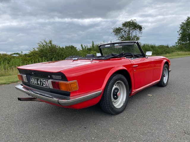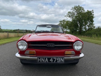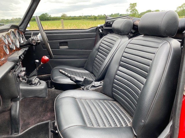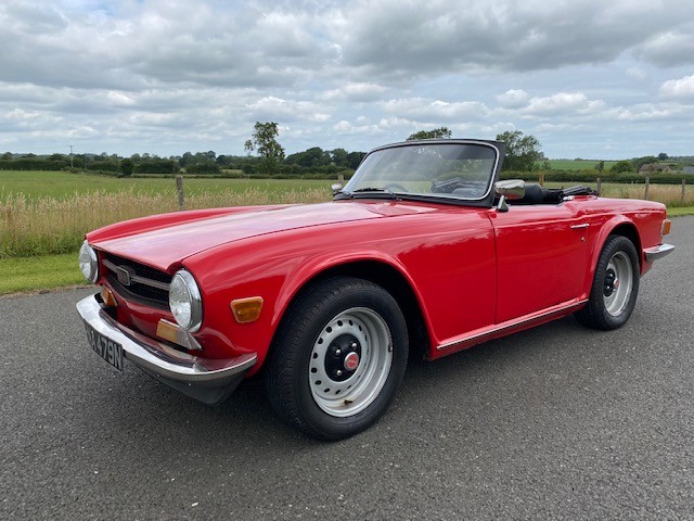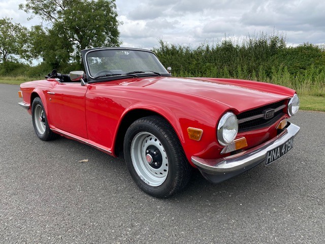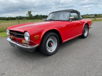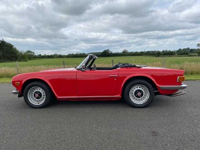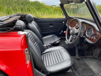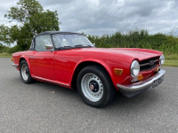1975 Triumph TR6 125bhp CR Chassis. Presented in Signal Red with a Black interior and black soft top. Subject to an older restoation with invoices and photos on file and recently has just had £18000 spent with invoices on file between 2018-2020 including a full resrpay which has been done to an extremely high standard with the underside also being painted and worth an inspection. The car has also recently had new seat covers and new soft top, the drivetrain has been fully restored with new suspension and re-bushed throughout.