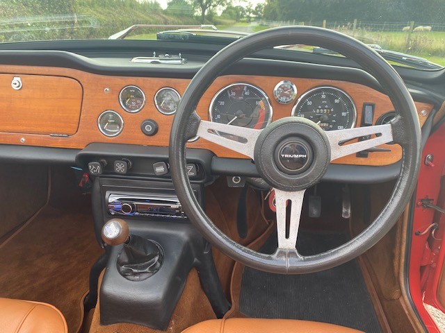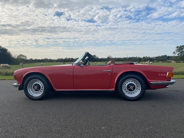 1972 Triumph TR6 150 BHP PI in Signal Red, manual overdrive.