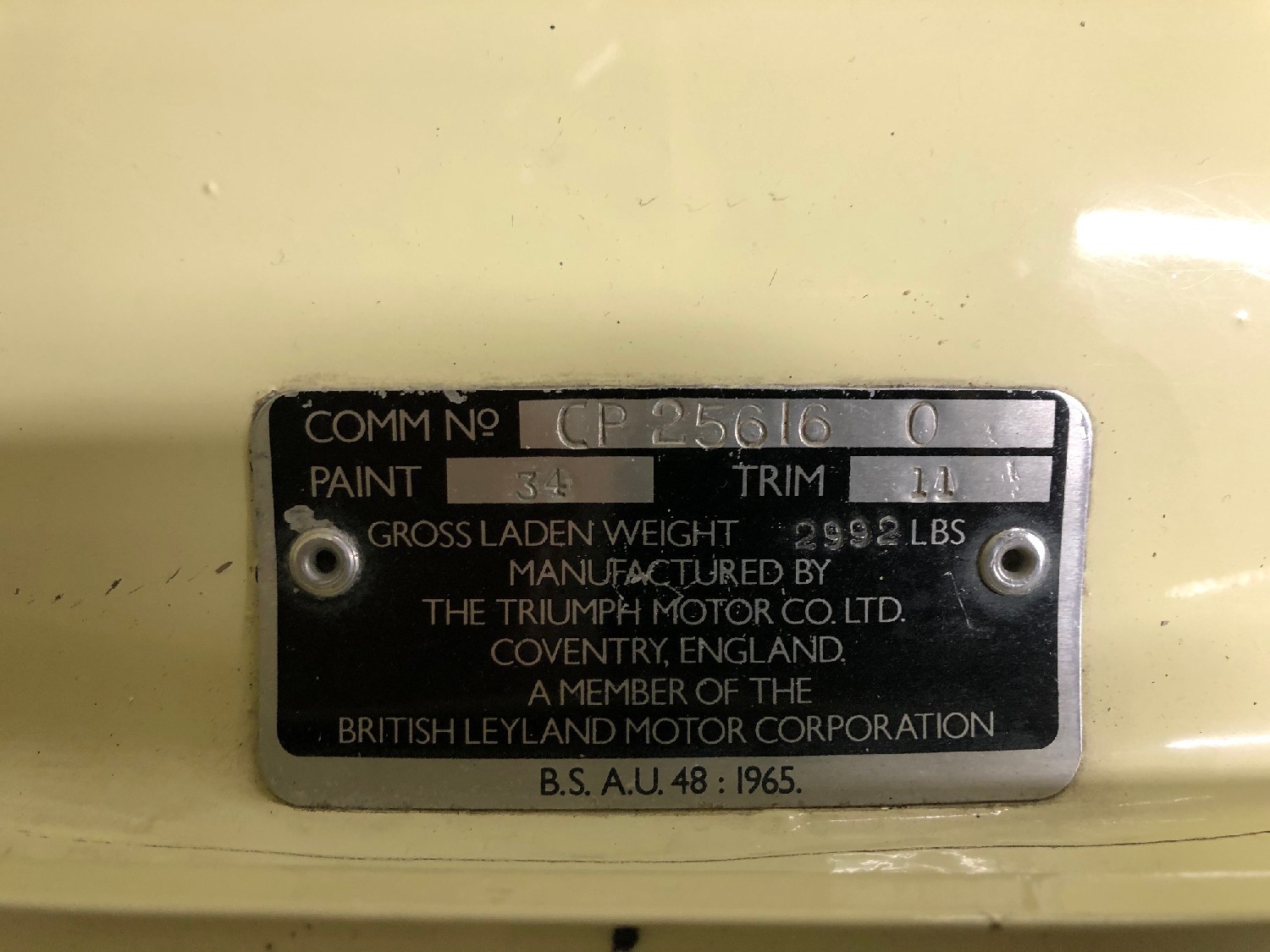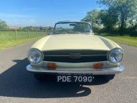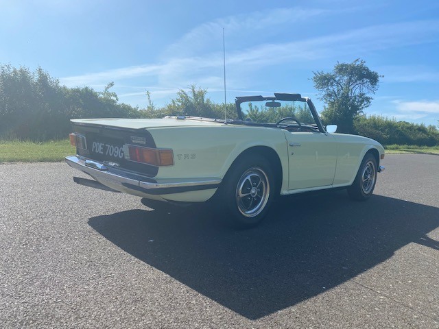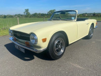 1969 Triumph TR6 150 BHP PI. Jasmine Yellow with Black Ambla upholstery and matching Jasmine yellow hard top. This TR is the more desirable 150 BHP model, in fact being the 195th right hand drive PI model produced it makes this car one of the oldest TR6 PI survivors. Equipped with overdrive operating on 2nd, 3rd and 4th gears it also has the original Rostyle wheel trims, original seats and steering wheel. The paintwork is still the same colour as it left the factory and displays a great lustre. The seats and carpets are showing no signs of wear and the chrome work is exceptionally good. The door shuts and panel gaps are correct and no unsightly chips or touch ins. The chassis is very solid and requiring no work whatsoever. When this car was restored some years ago no expense was spared and the car still presents fantastically well today. The history portfolio is huge with bills, invoices and maintenance details dating back many years with lots of old mots also present. The British Motor Museum Heritage Certificate shows that the car is matching numbers and as it left the factory. Cars this original rarely become available and this is a great opportunity to acquire a special car. The car drives just as you would expect with a very strong engine with excellent oil pressure and a smooth gearbox with working overdrive. Absolutely any inspection is welcome. Finance can be arranged. Part exchange considered. Free U.K mainland delivery. Please call us for any further details or visit our website morseclassics.co.uk. Find us, like and share on Facebook and Instagram.