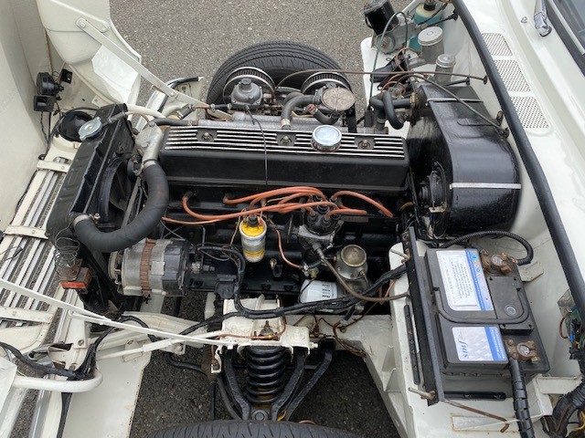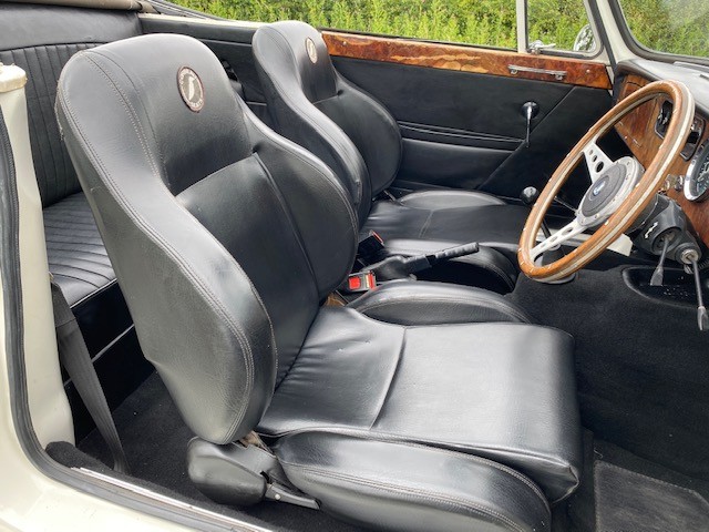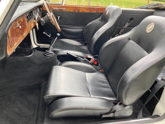 This Triumph Vitesee is a very nice straight car with lovely paint, excellent panel gaps and a very solid underside. Upgrades include stainless sports exhaust with 6 branch extractor manifold, kenlowe fan, spax adjustable telescopic shocks all round, minilite replica alloys, alternator conversion, spin on filter, ali rocker cover, K&N's, super period corbeau recliners, wood rim motolita. Hood is in very good condition with no rips or tears. Upon test drive the Vitesse drove just as it should with a strong six cylinder engine and smooth gearbox with working overdrive.